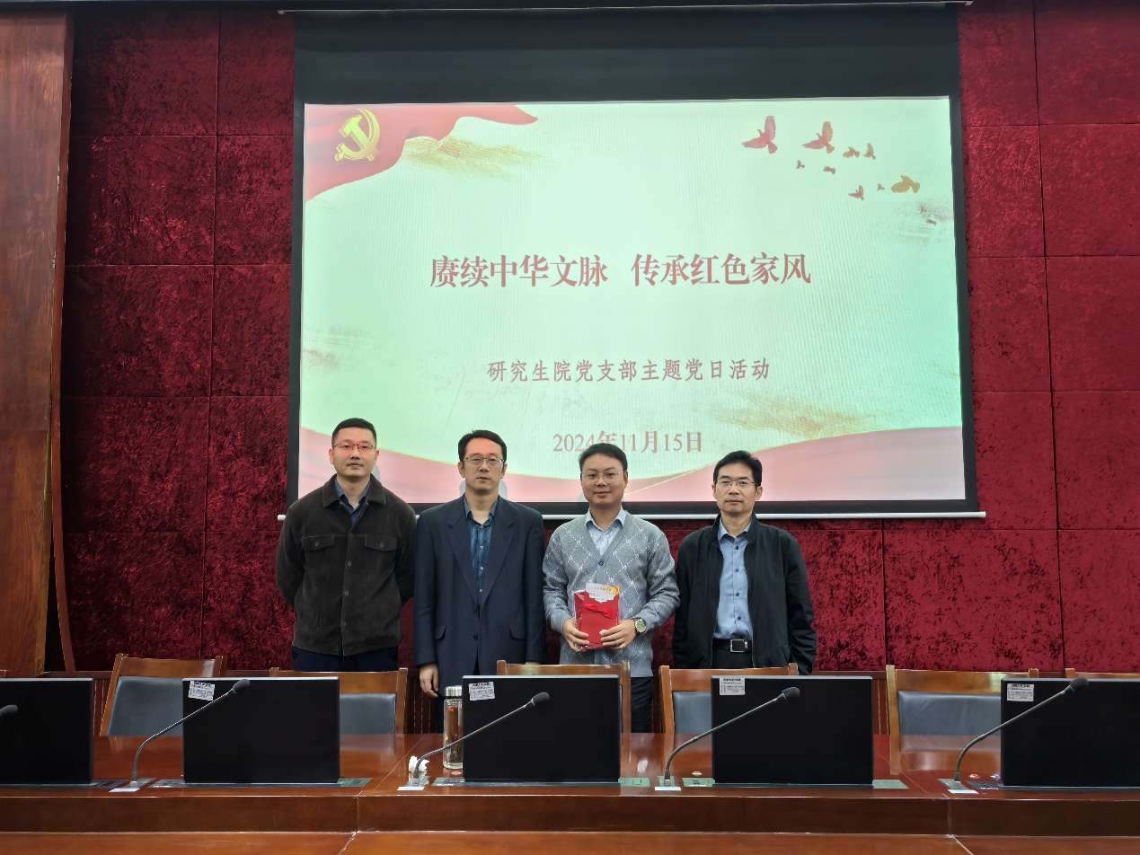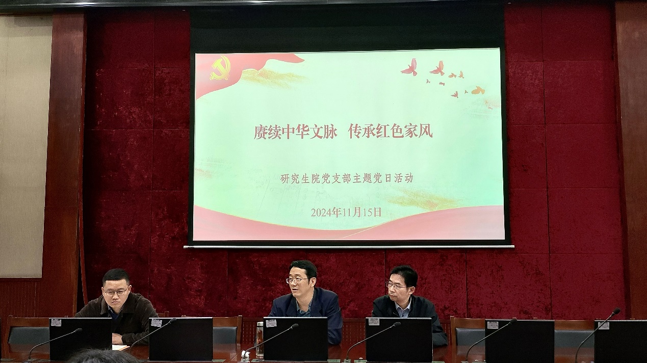 2024年11月15日10:30,研究生院党支部主题党日活动在研究生院电子会议室举行。活动由研究生院党支部书记邱江同志主持。