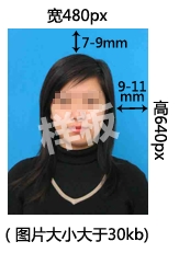 3、照片格式要求:照片应为蓝色背景(参考值RGB<100,197,255>),正面免冠近照,图像文件规格为宽480像素*高640像素,分辨率300dpi,24位真彩色。压缩后图片大小在30KB-40KB之间,图片格式为JPG。