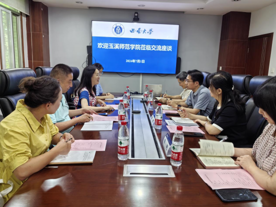 研究生院 党委研究生工作部相关负责人介绍学校研究生总体情况、专业学位研究生的“产教融合”和项目制培养以及学校研究生思想政治教育工作情况。马克思主义学院相关负责人介绍学院的综合情况,希望加强同玉溪师范学院之间的合作交流。