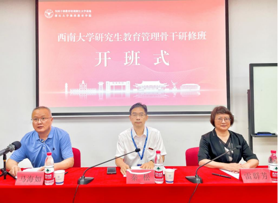 7月25日上午,研修班开班式于浙江大学华家池校区举行,betway西汉姆联党委研究生工作部部长秦松,浙江大学继续教育学院副院长雷群芳,浙江大学继续教育学院西南二区培训部部长马海如出席开班式。仪式由马海如部长主持。雷群芳致欢迎词,并对浙江大学的历史沿革和干部教育培训工作情况进行简要介绍,她表示浙江大学继续教育学院将严格按照既定培训目标,认真做好组织工作,为研修学习提供有力保障。秦松部长代表学校对浙江大学继续教育学院给予的大力支持表示衷心的感谢,他强调,全体学员应把握新时代研究生教育变革的机遇和挑战,结合工作学,结合自身学,全面提升履职尽责的能力本领,促进工作提质增效。