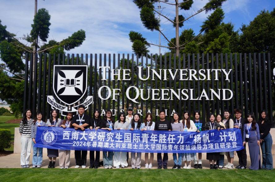 编者按:为全面贯彻落实党的二十大精神和全国教育大会精神,深学笃行习近平新时代中国特色社会主义思想,落实立德树人根本任务,推动和深化发展型资助育人工作,切实提升学校研究生资助育人成效,为全面提高学校高层次国际化人才培养质量、助推学校“双一流”建设提供坚实保障,研究生院、党委研究生工作部启动研究生国际青年胜任力“扬帆”计划,于8月6日至8月19日组织研究生骨干赴澳大利亚开展2024年暑期澳大利亚昆士兰大学国际青年领袖领导力访学项目,引导同学们拓宽文化与知识视域,全面提升综合素养,为培养具有人文素养、优良品质和实践能力的新时代青年贡献力量。