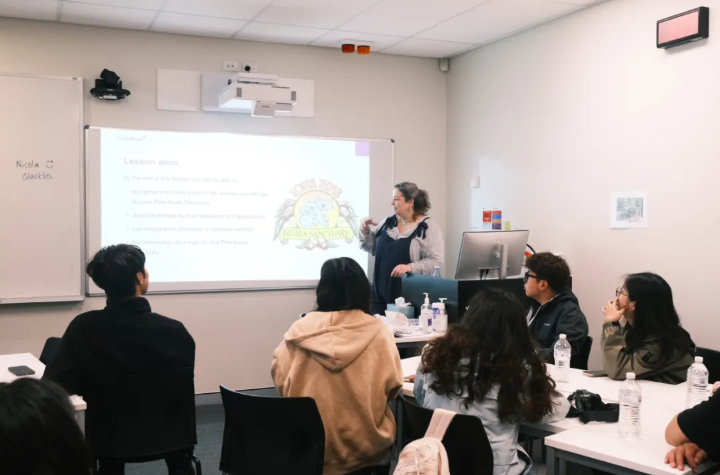 在澳洲动物与自然课程中,访学团组将基础理论课堂与实地参观相结合,在老师们的带领下,团组成员们进入龙柏(LonePine)动物园,逐一观察课程教学中所提及的动物。访学团组重点关注澳大利亚的独特物种,例如考拉、袋鼠、袋熊等的生活习性和生存环境,通过近距离地观察与互动,增强团组成员们对生物多样性的认识,并理解到保护野生动物与生态环境的重要性。