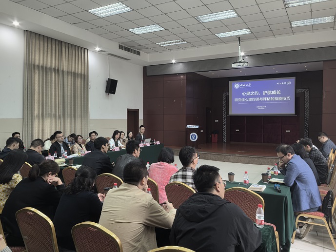 10月18日上午,学校在研究生院八一礼堂举行了“研工新说”:心灵之约,护航成长——研究生心理约谈与评估的技能技巧”培训活动。党委研究生工作部部长秦松、副部长周敏出席活动,研究生心理育人专家代表、党委研究生工作部相关科室工作人员及各培养单位研究生辅导员代表参加活动。