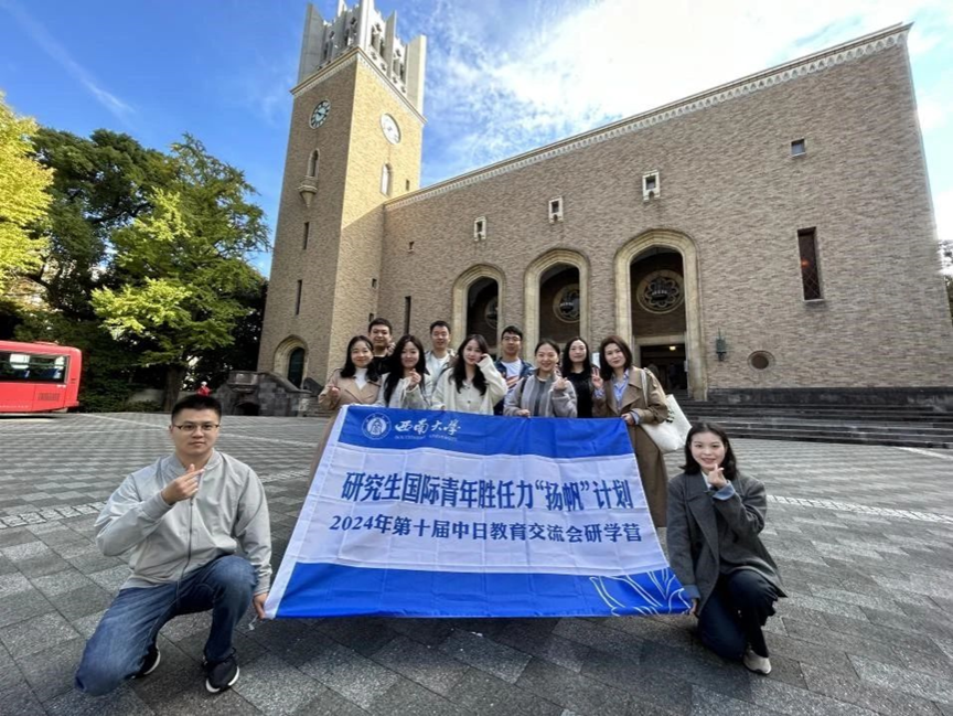 为全面贯彻落实党的二十届三中全会精神和全国教育大会精神,深学笃行习近平新时代中国特色社会主义思想,落实立德树人根本任务,推动和深化发展型资助育人工作,全面提高全校高层次国际化人才培养质量,为助推学校“双一流”建设提供坚实保障。研究生院 党委研究生工作部启动研究生国际青年胜任力“扬帆”计划,精心策划组织研究生赴日参与第十届中日教育交流会——中日学生交流会研学活动,通过国际研学拓展文化视野与知识边界,为全面提升研究生综合素质,锻造兼具人文素养、卓越品质与实践能力的新时代青年精英贡献力量。本次研学活动时间为2024年11月8日至12日,在党委研究生工作部相关老师的带领下,10名来自不同培养单位的优秀博士生开启了一场文化交融与智慧碰撞的研学之旅。