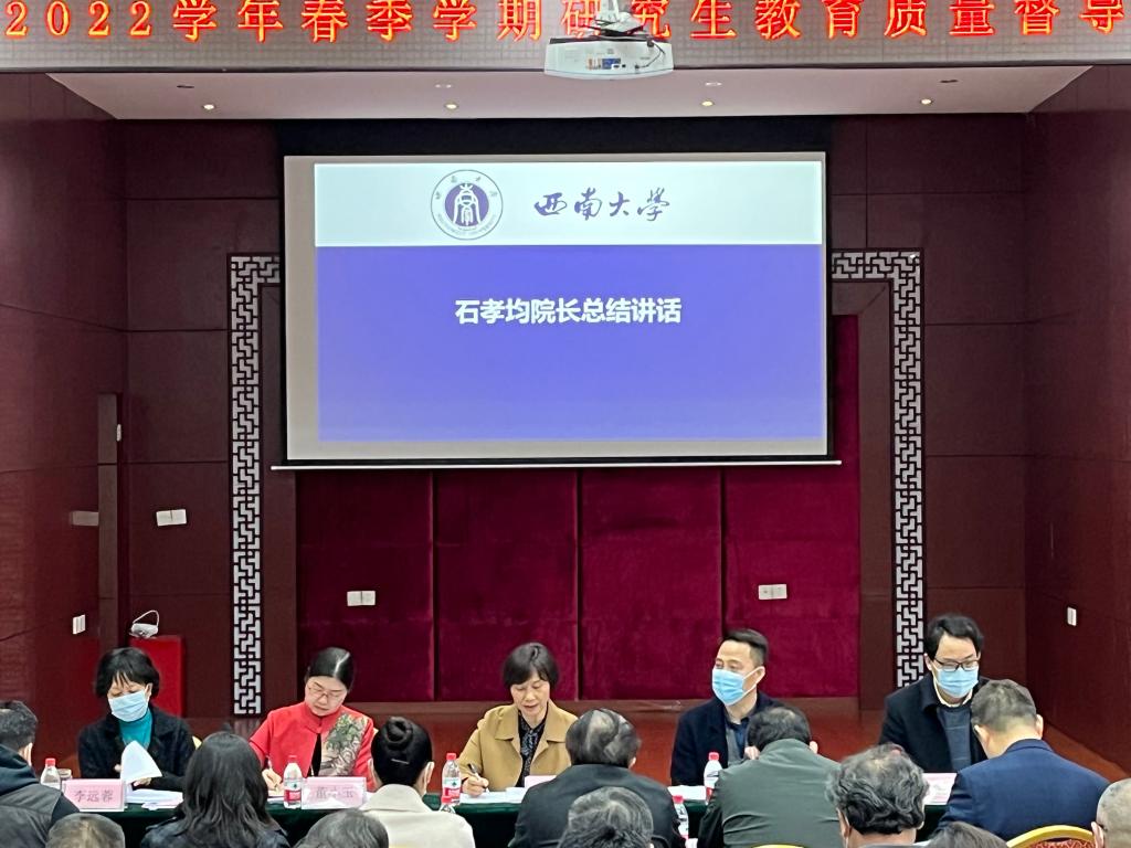 会议介绍了本学期研究生教育质量督导检查工作方案。本学期督导工作检查范围进一步延伸,工作重心由课堂教学向研究生教育全环节转移。