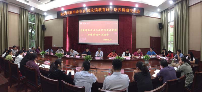5月30日,我校免费师范毕业生在职攻读教育硕士培养调研交流会在研究生院电子会议室举行。教育部西南基础教育课程研究中心主任、原西南师范大学校长宋乃庆、研究生院副院长涂涛、专业学位管理办主任黄漓红、15个免师教育硕士培养单位主管院长、教学秘书以及宋乃庆教授团队成员出席此次调研交流会,会议由研究生院副院长涂涛主持。