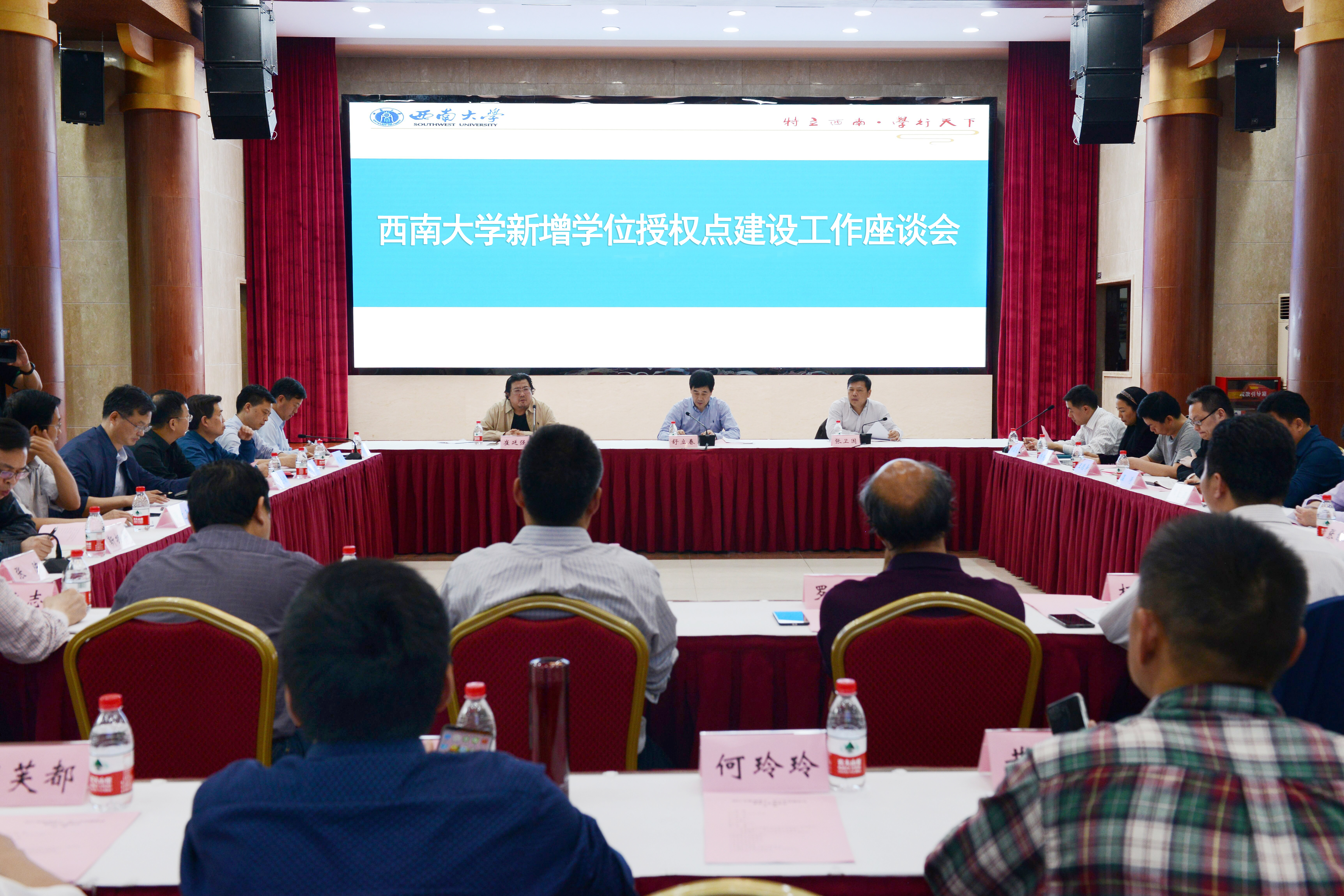会议首先由研究生院介绍学位授权点申报基本情况。随后,校党委舒立春书记、张卫国校长为新增学位授权点授牌。相关学院院长和代表在会上就学位点建设思路、存在的问题与建议进行了交流发言。