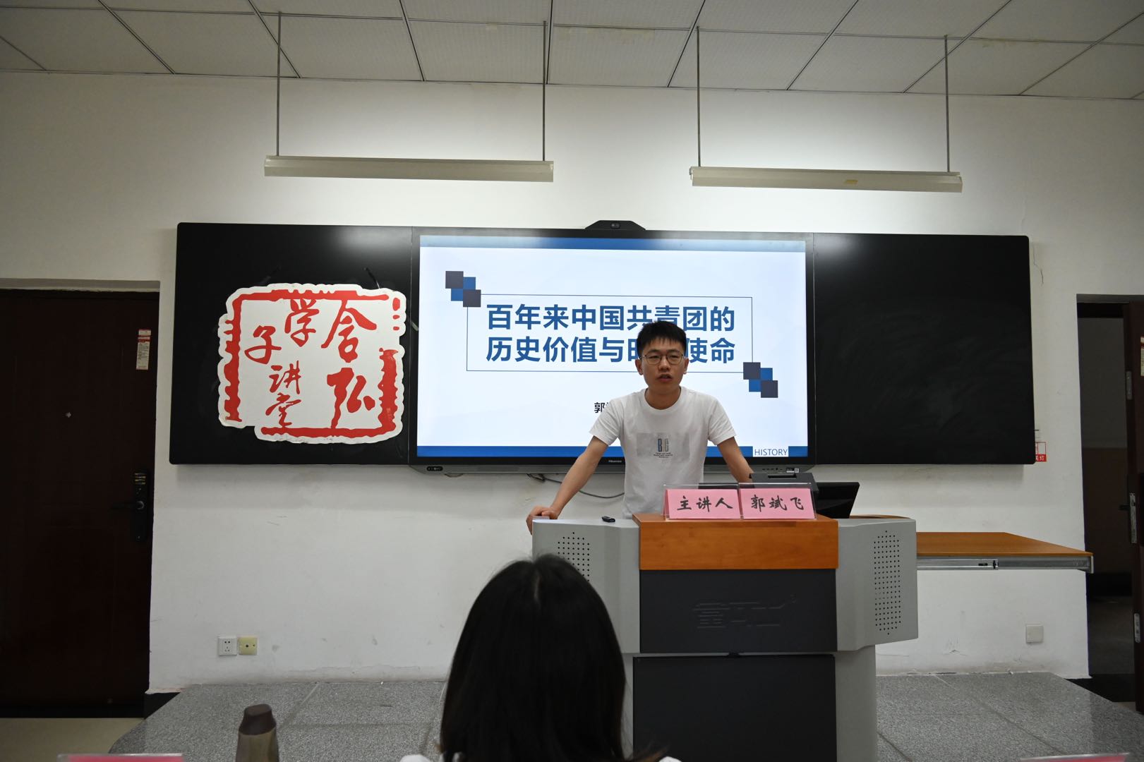 郭斌飞同学系统梳理了中国共青团的百年历程,百年来共青团承担了不同的时代使命。共青团的百年历程积淀了丰富的历史经验,为当下的共青团工作带来了新启示:应当坚持党的领导、以党的宗旨为宗旨,做党的“助手与后备军”;要毫不动摇地为党培养社会主义建设者与接班人;带领广大青年担当时代使命,投身于更加广阔的社会主义建设实践中。