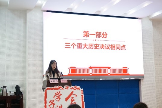 薛雅倩对三个重大历史决议的相同点进行了介绍,提到三个重大历史决议都是党自我总结、自我革命精神的体现,都达到了统一思想、加强团结的目的,都坚持继往开来导向,促进和实现了马克思主义中国化的飞跃。