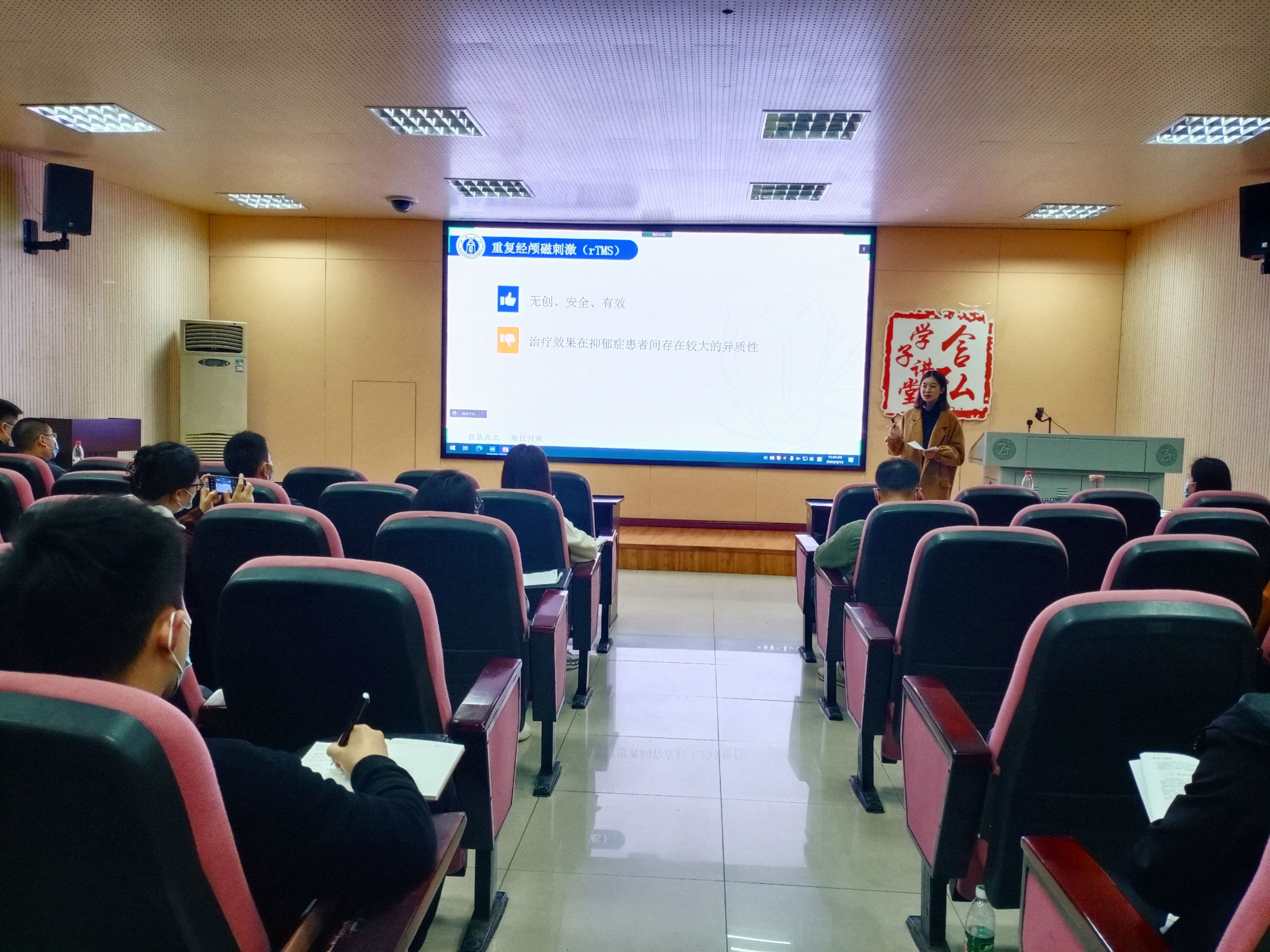 2020级应用心理专业研究生陈丹妮的分享主题为《基于丘脑-前额叶功能和结构连接的机器学习预测重复经颅刺激治疗抑郁症的疗效研究》。她首先介绍了抑郁症的核心特征并总结了传统疗法的优缺点,随后引出重复经颅刺激(rTMS)这一新兴治疗方式,指出这是一种无创、安全、有效的抑郁症治疗方法。其研究结果表明rTMS治疗有效,前额叶-中背核的基线FC可以预测rTMS治疗改善,并确定了前额叶皮层中对预测贡献较大的区域。在报告的最后,陈丹妮同学谈到了研究的局限性,并和大家讨论了rTMS未来临床应用的可能性。龙长权老师在最后的点评环节中表示,自己对于基础类的论文更关注技术的细节,并强调期刊审稿人对于基础类论文的审查重点就是技术细节,为同学提供了非常宝贵的建议。