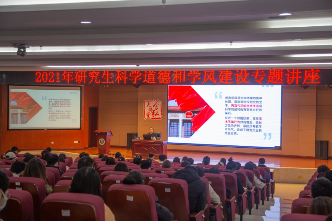 学校始终高度重视研究生科学道德和学风建设,研究生院、党委研究生工作部邀请专家开展专题讲座,引导研究生在力求学术创新的同时恪守学术道德,遵守学术规范,锻造学术品格。科学道德与学风问题直接影响到科学的繁荣发展,是带有全局性、根本性的问题,加强科学道德和学风建设,不仅是推动学术研究自身健康发展的前提和基础,而且对倡导求真务实的社会风气,对不断提高全社会的思想道德水准也能起到积极的促进作用。