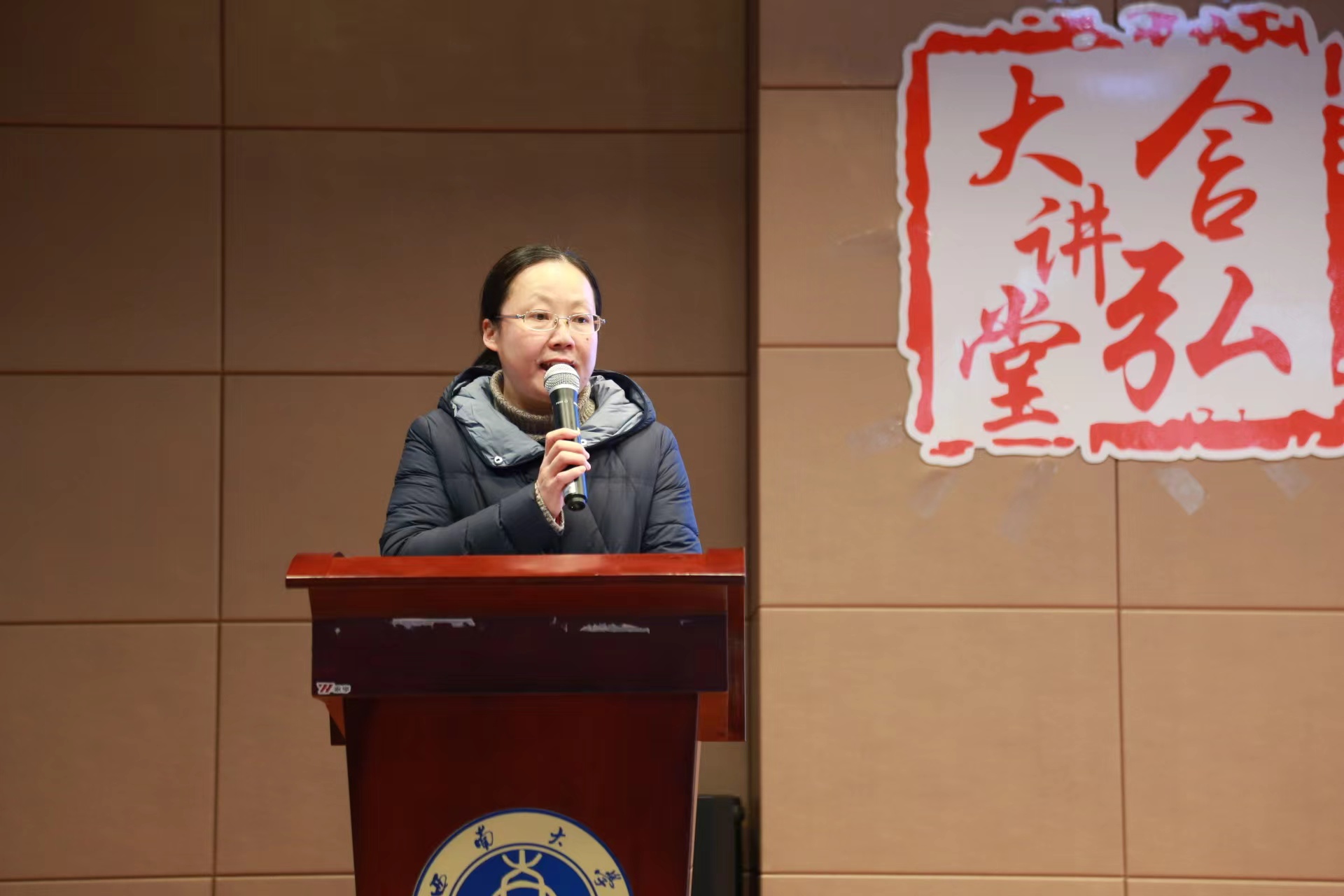 胡娟老师作总结致辞,她再次感谢夏庆友教授的到来,并号召广大研究生同学严守学术道德与行为规范,把做人、做事和做学问统一起来,努力成为优良学术道德的践行者和良好学术风气的维护者。