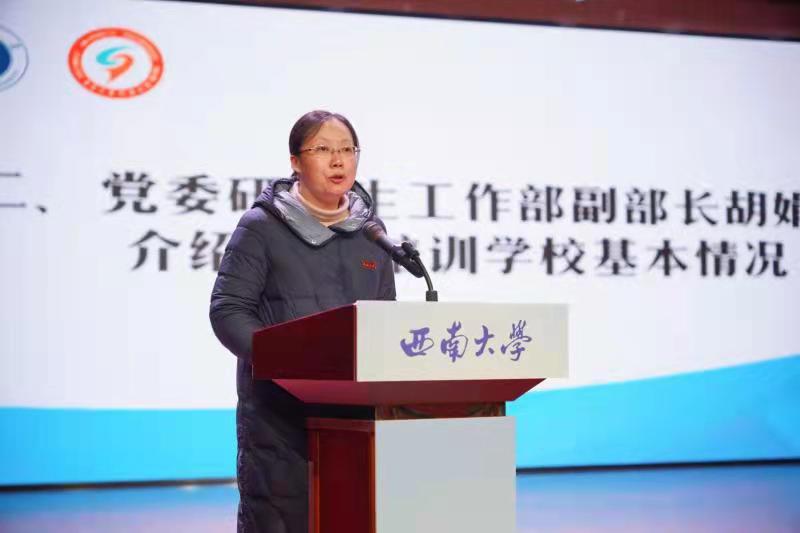 为深学笃用习近平新时代中国特色社会主义思想,贯彻落实习近平总书记关于教育工作和青年工作的重要指示精神,11月19日晚,betway西汉姆联第十五期研究生骨干培训学校开班仪式暨首场辅导报告会在圆顶报告厅顺利召开。重庆市团校党委委员、副校长王毅、研究生院副院长黄大宏、党委研究生工作部副部长胡娟、党委研究生工作部教育科科长胥宏祥、体育学院研究生辅导员黄路琦出席仪式,第十五期研究生骨干培训学校学员参加。仪式由研究生院副院长黄大宏主持。