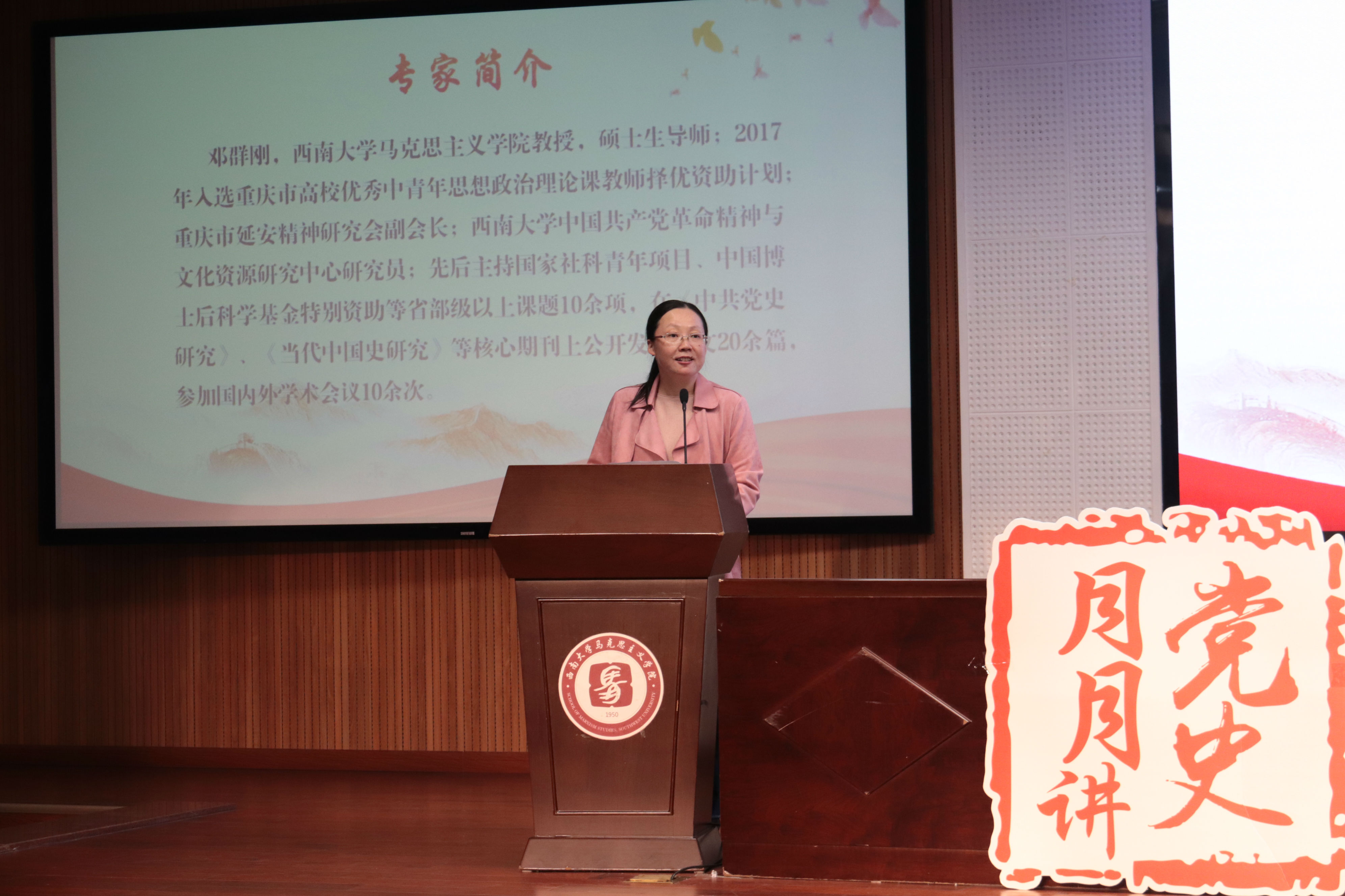 4月28日晚,含弘大讲堂之“走进英模,重温党史——重庆市英模人物的精神风范及其形成机理”专题讲座在马克思主义学院505报告厅顺利举办。马克思主义学院邓群刚教授应邀莅临作题为“走进英模,重温党史——重庆市英模人物的精神风范及其形成机理”的专题讲座。讲座由学校党委研究生工作部副部长胡娟主持,学校研究生代表参加了此次讲座。