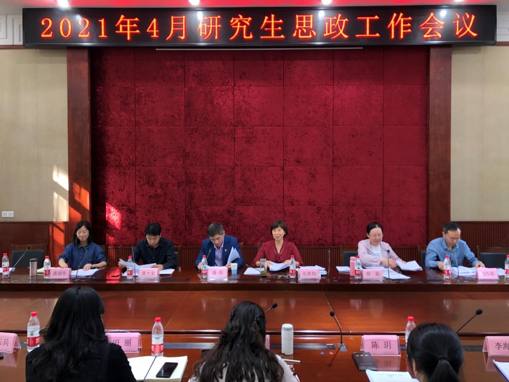 4月30日下午,学校2021年4月研究生思政工作会议在研究生院八一礼堂电子会议室召开。学校党委副书记潘洵出席会议,研究生院院长、党委研究生工作部部长石孝均,研究生院副院长黄大宏,党委研究生工作部副部长胡娟,党委研究生工作部相关科室负责人以及各二级培养单位分管研究生思政工作的党委副书记参加会议,会议由石孝均主持。