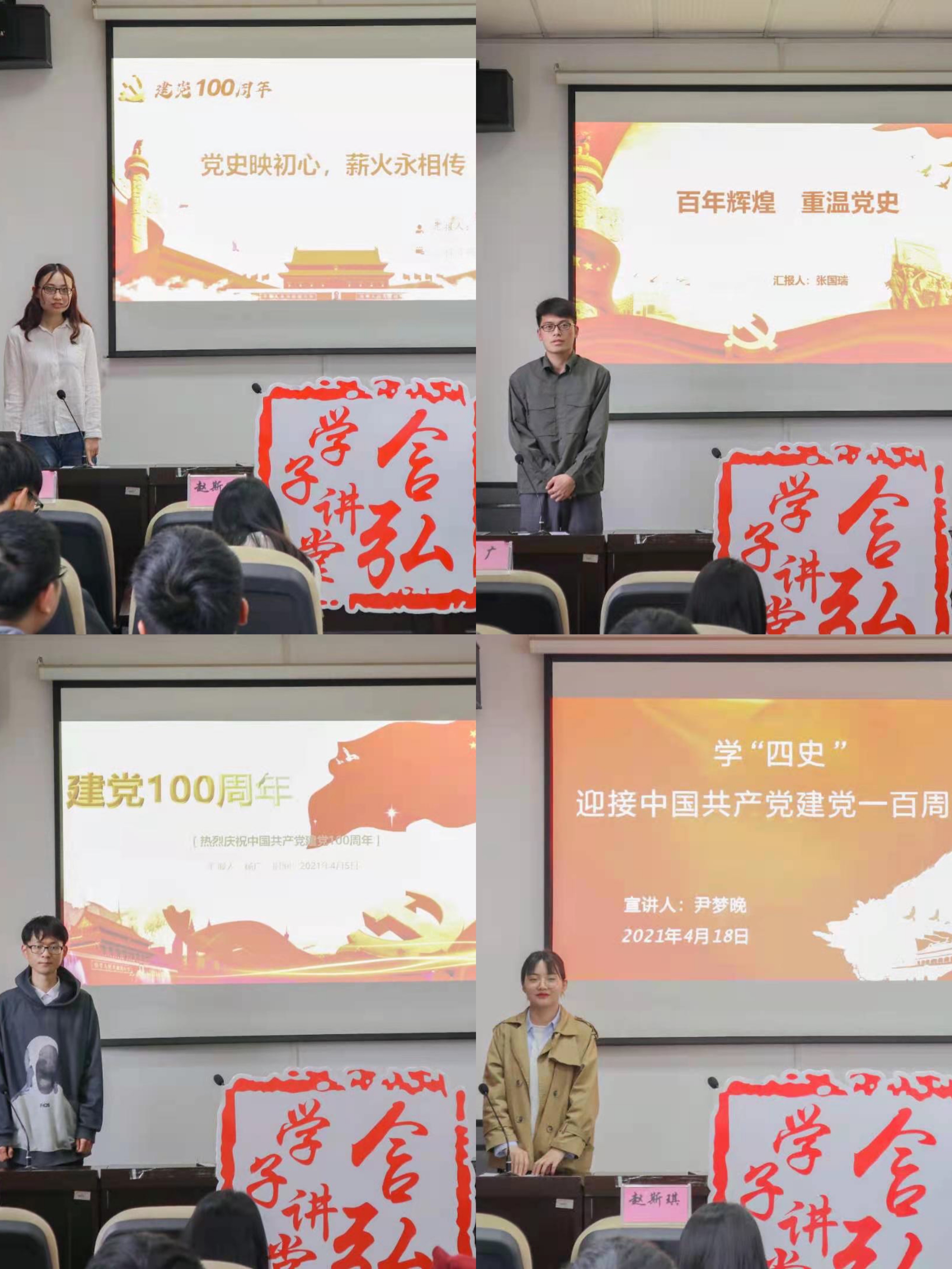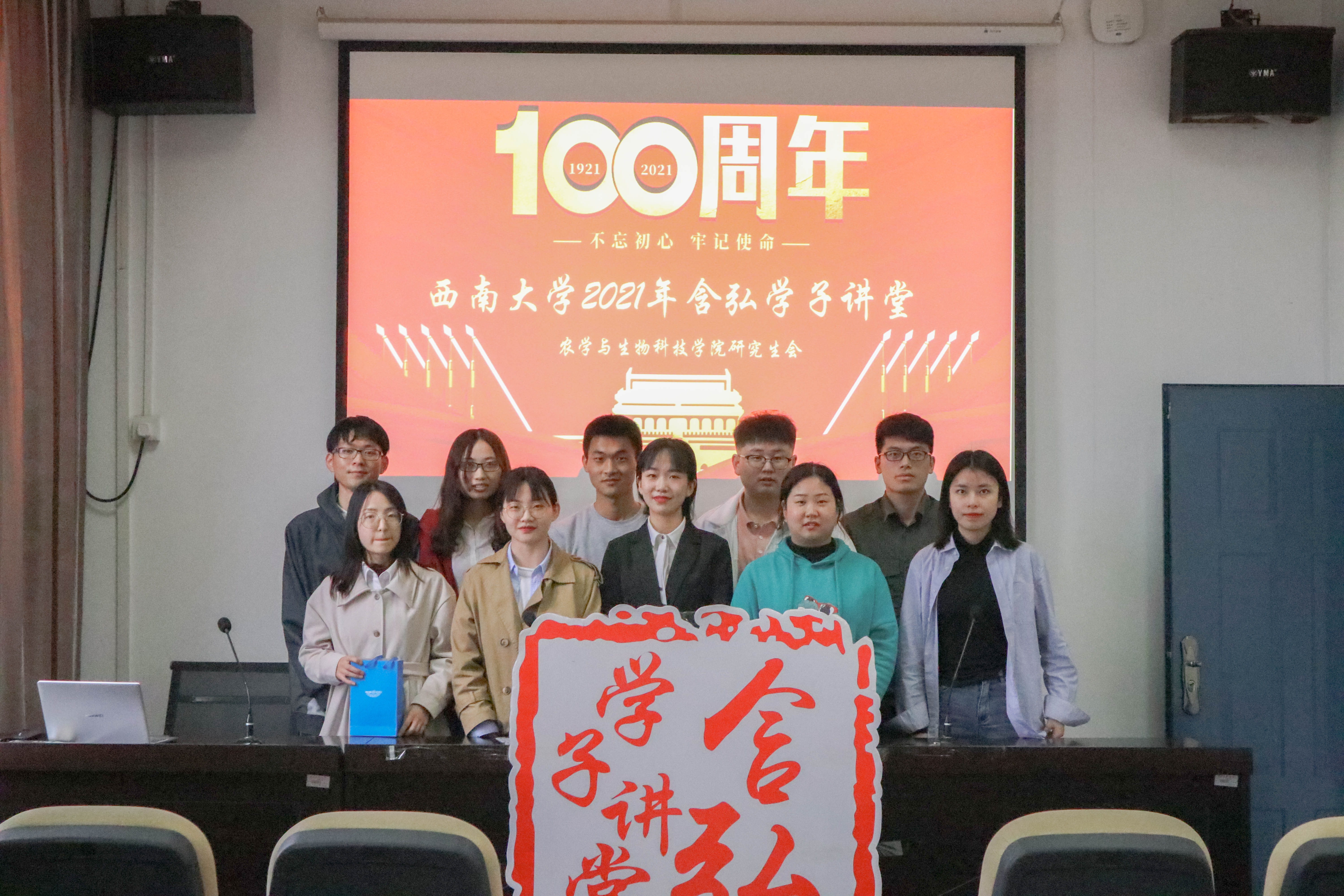 2021年4月18日下午,由校研会主办、农学与生物科技学院研究生会承办的含弘学子讲堂之“庆祝建党100周年”主题讲座在棉研楼501顺利举行。本次主题讲座邀请了赵斯琪、杨广、任俊洋、尹梦晚、张国瑞五位本院优秀学子对中国共产党的光辉历程进行回顾。