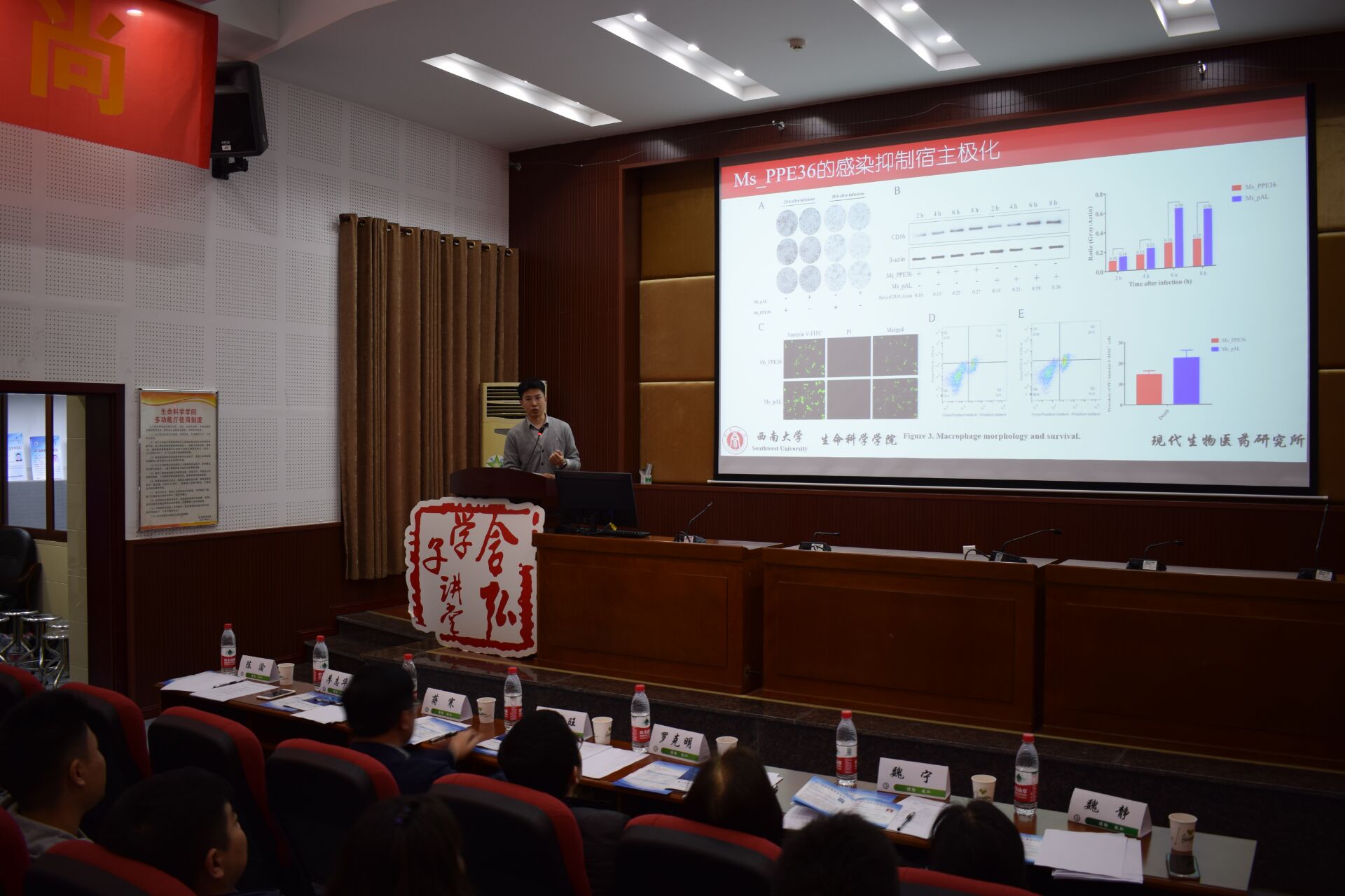 本次学术论坛参会嘉宾有美国国家科学院院士邓兴旺教授、生命科学学院党委书记蒋寒、生命科学学院院长罗克明、生命科学学院党委副书记陈渝、生命科学学院副院长廖志华,以及陶建平教授、魏静教授、周林燕研究员、魏宁教授、谷彩霞老师等。此次学术论坛分为博士场与硕士场,博士场在上午8:30-12:00举办。