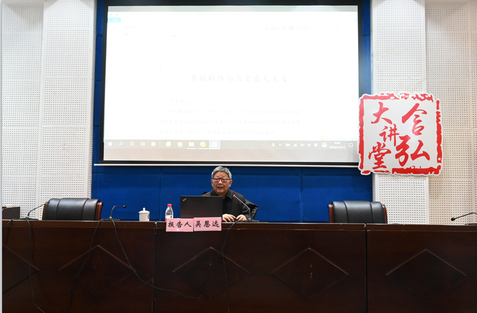 吴恩远教授同在场师生进行了互动交流。一位学生表示:“当今时代,我们要吸取苏联解体的教训,立足现实,坚持党的领导、马克思主义的指导和民主集中制,培养优秀的干部和可靠的接班人,努力实现中华民族伟大复兴的中国梦。”讲座在热烈的掌声中圆满结束。