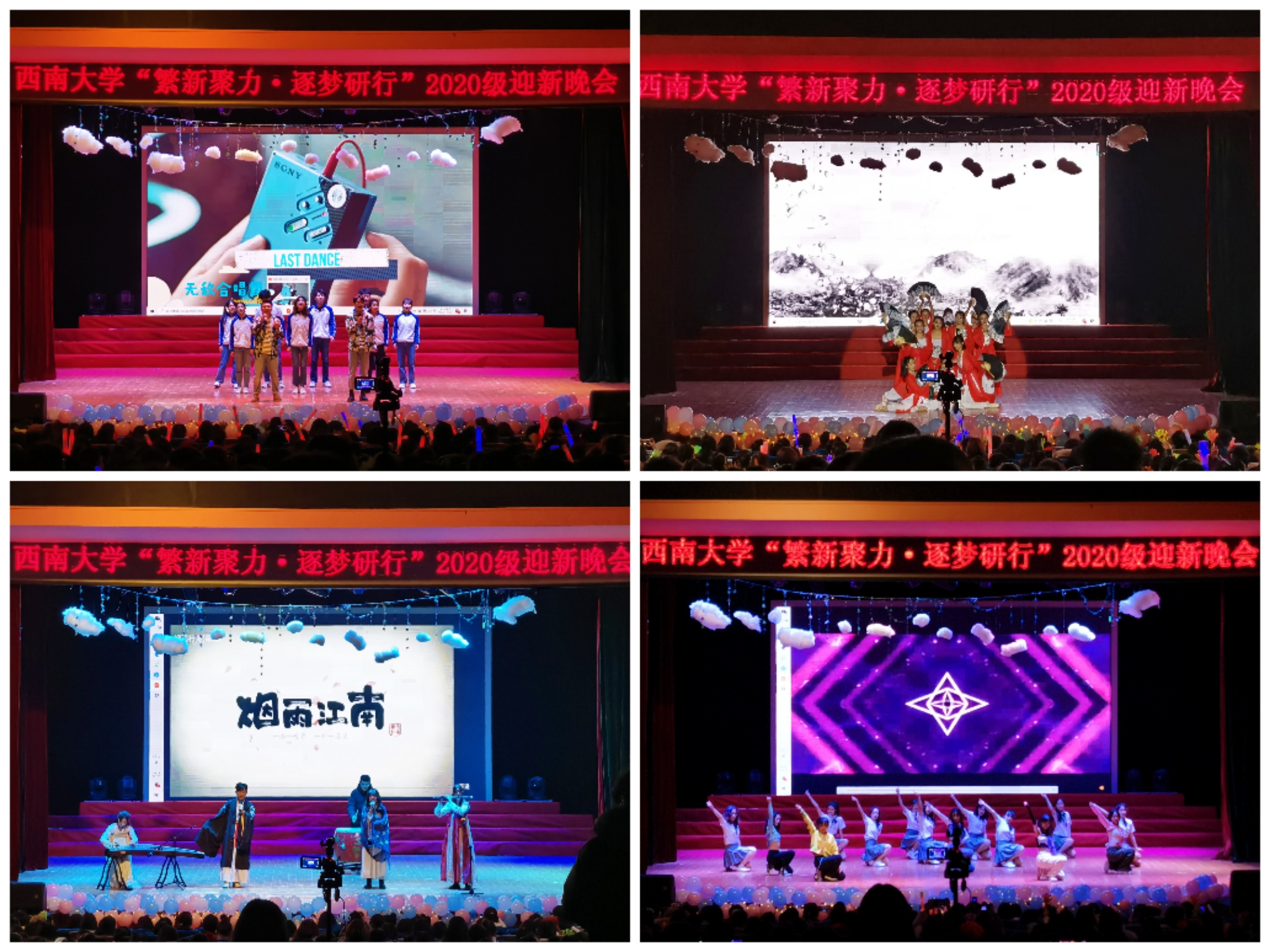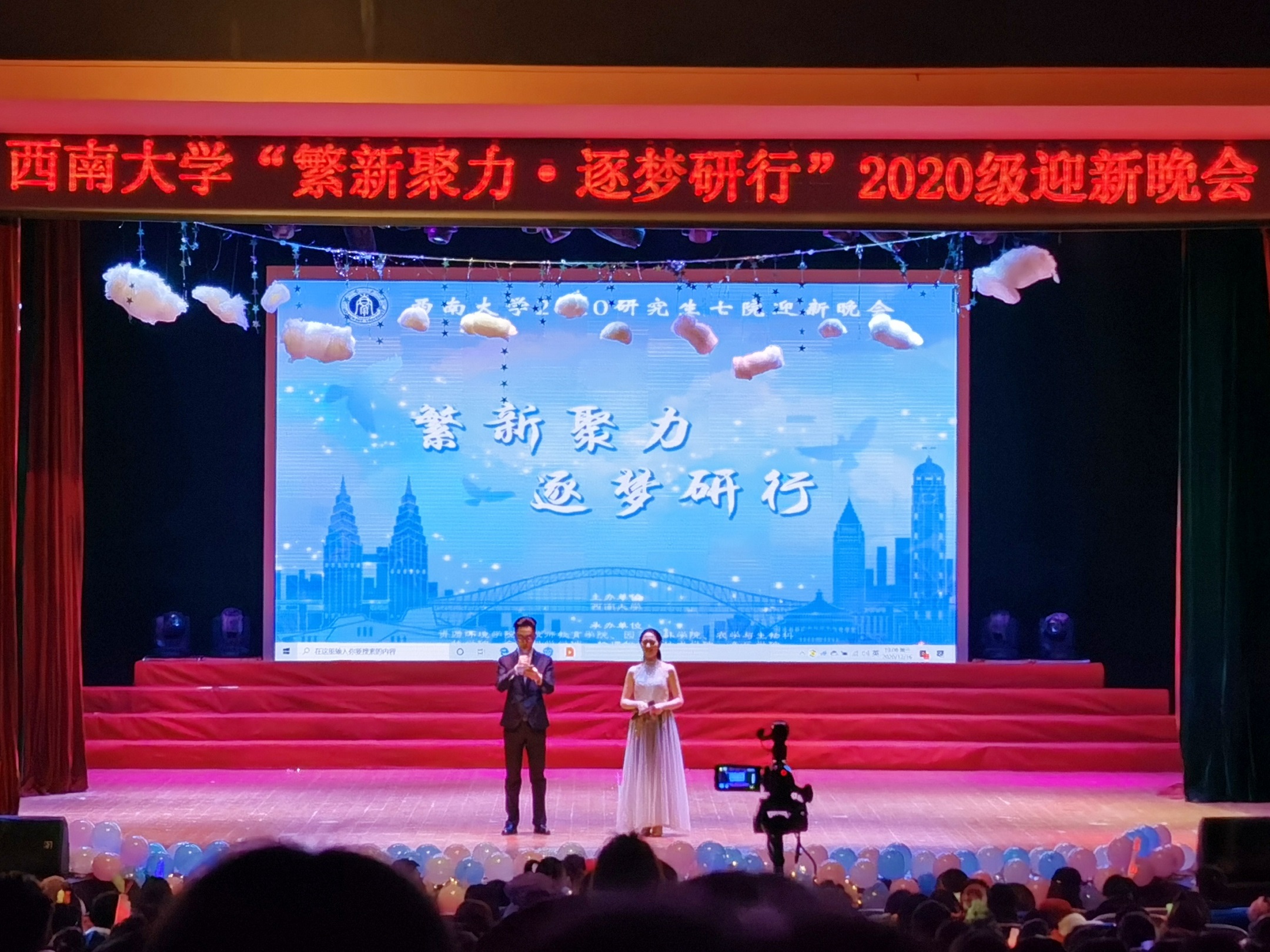 奏响青春韵律,谱写绮丽前景。为了迎接2020级新生的到来,推动新生融入西大的生活和学习,2020年12月16日晚上7点,由betway西汉姆联主办,资源环境学院、园艺园林学院、农学与生物科技学院、教师教育学院、食品科学学院、物理科学与技术学院、音乐学院共同承办的“繁新聚力·逐梦研行”研究生迎新晚会在betway西汉姆联大礼堂隆重举行。