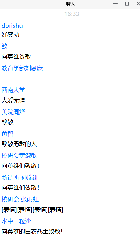 讲座过程中,周教授谈到了武汉病患与医务工作者之间的互动、陪伴,讲到了奔赴在前线医务同事们的牺牲、奉献,动情之处几度哽咽,同学们纷纷留言鼓励。