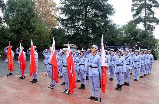 22日上午,开班仪式在娄山关文化园举行,全体参训学员身着工农红军军服参加仪式。一起观看了娄山关大捷实景表演,切身感受英勇的红军战士们高呼口号、浴血冲锋的长征精神;重走长征路、攀爬娄山关,登上娄山山脉最高峰—西风台,参观小尖山战斗遗址;伫立在毛主席题写的《忆秦娥·娄山关》碑文前,集体朗诵了这段笔走龙蛇、豪迈奔放的题词,感悟先辈们为信仰奋不顾身的精神。在结束一天的学习后,学员们传承革命先辈们吃苦耐劳精神,选用当地农家食材,自做红军饭,在大山深处点燃篝火、唱响红歌。
