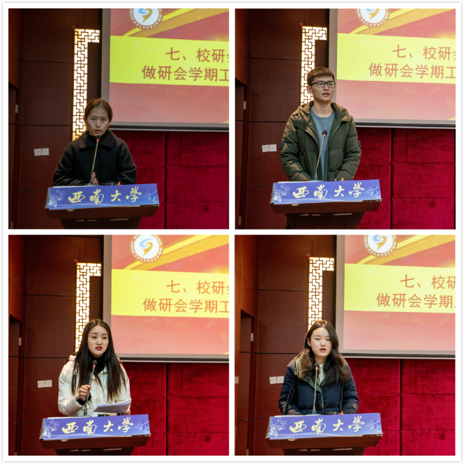 最后,主席团和部长团成员分别作了述职报告,针对秋季学期以来各工作板块进行汇报,让每个成员对自己一学期的学生工作有了清晰的认识。此次试行述职评议制度,旨在响应团市委、重庆市学联的号召,加强干部队伍建设,是我校研究生会落实组织架构改革做出的新尝试。