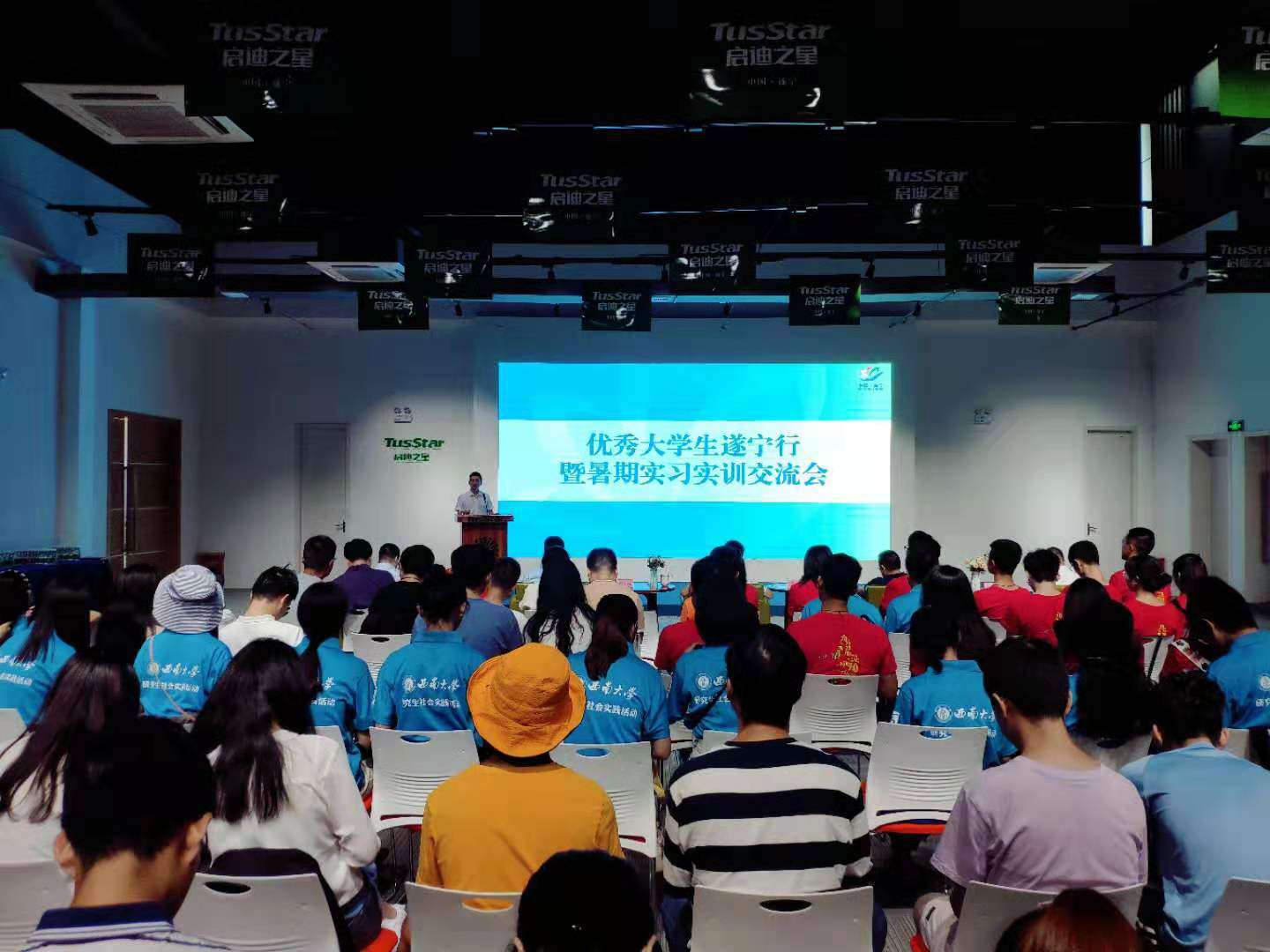 7月25日,我校赴遂宁开展社会实践的研究生团队参加了遂宁市委组织部举行的优秀大学生遂宁行暨暑期实习实训“群英荟”活动,中共遂宁市委常委、组织部长周鸿、遂宁市委组织部副部长梁识栋、遂宁市人才办主任李鸿桀、遂宁市人力资源社会保障局副局长梁志勇,以及赴遂工作的高层次人才代表、遂宁市规划局有关同志,清华大学、电子科技大学等知名高校赴遂实习实训优秀大学生出席了本次活动。
