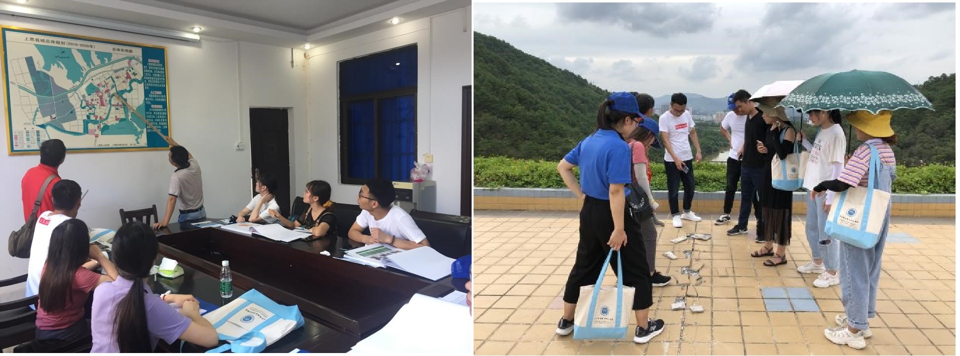 科技服务分团的同学们以调研为契机,通过对接澳加粮油工业有限公司、上思县住建局等社会企业与政府部门,走访了三江口公园、公正乡天堂屯乡土特色示范点,百驮、汪乐、布透温泉沿线等“一村一镇”示范点等地,深入基层,认识了当地特色农副产品,对不同乡镇的发展建设情况进行了实地调研,与单位领导以及当地村民进行交流学习,积极结合自身的学科特色,发挥自己的专业特长,为防城港市城乡规划与乡村振兴的建设工程添砖加瓦,贡献自己的绵薄之力。