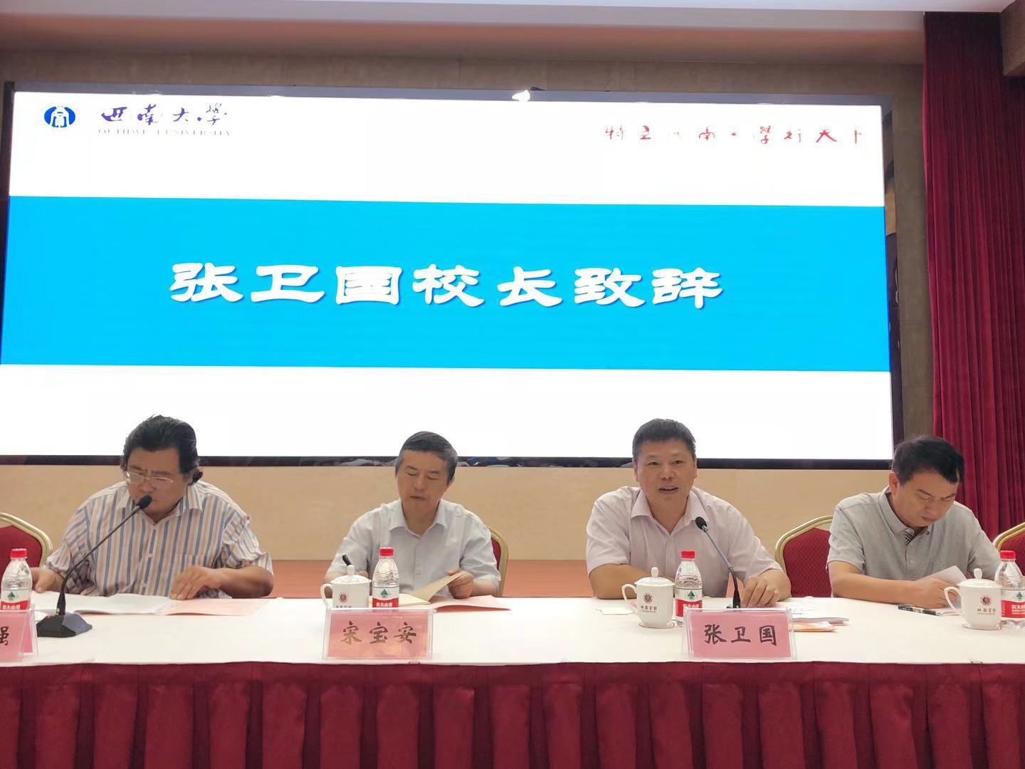7月25日上午,学校在东方红会议厅召开“双一流”建设中期自评校外专家评审会议。中国工程院院士、贵州大学校长宋宝安教授,中国水稻研究所副所长钱前研究员,四川大学华西基础医学与法医学院院长黄灿华教授,大连理工大学化工与环境生命学部副部长杨青教授,四川大学生命科学学院刘建全教授,华东师范大学心理与认知科学学院郭秀艳教授,武汉大学化学与分子科学学院刘志洪教授等七名校外专家莅临会场指导评审工作。校长张卫国,副校长崔延强出席会议。学校相关职能部门负责人以及学校八支“双一流”学科建设团队全体成员参加会议。会议分为两个阶段,第一阶段由崔延强副校长主持,第二阶段由宋宝安院士主持。