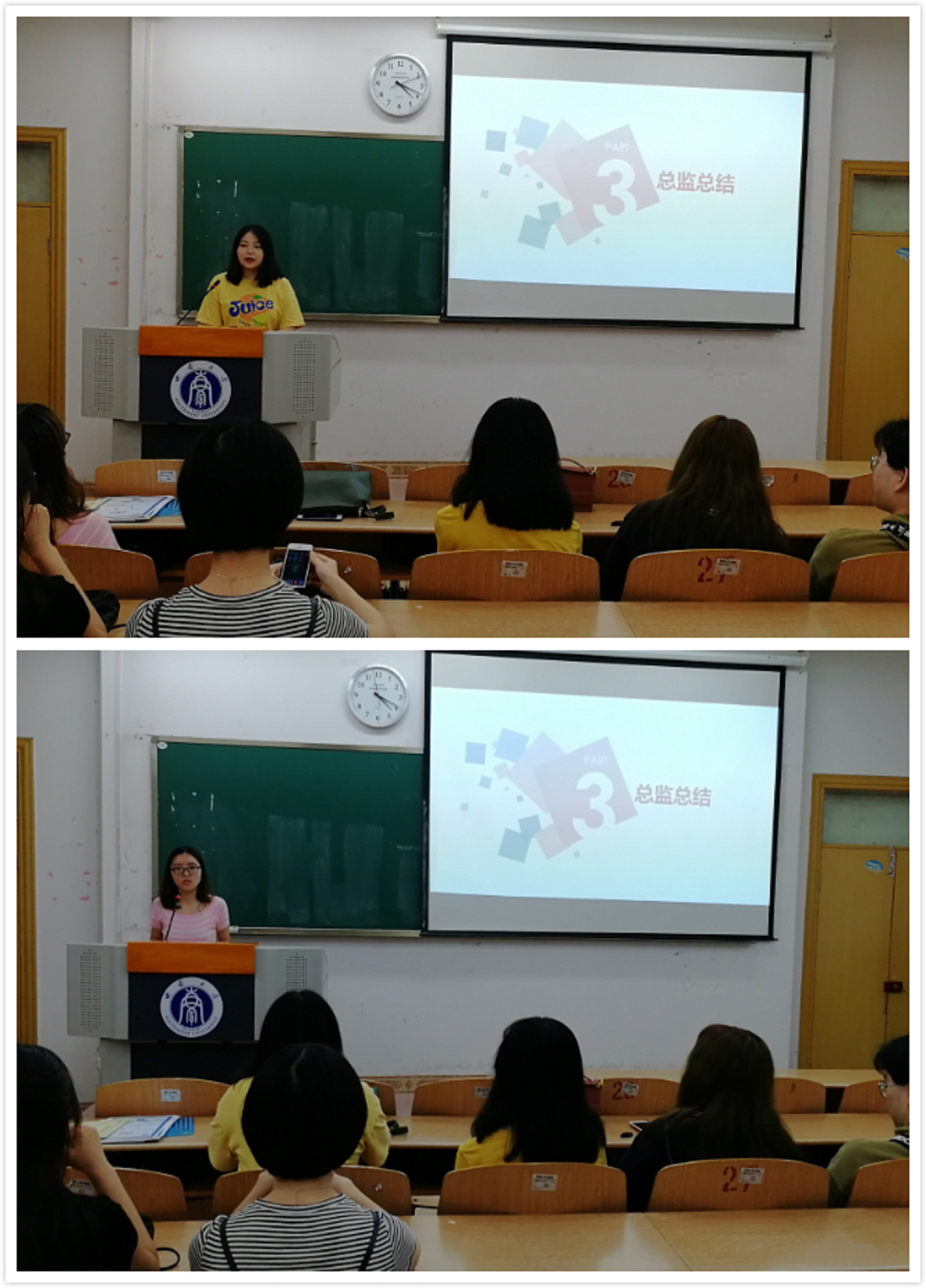 随后,副总监林乐同学和唐甜甜同学分别对学年工作进行了总结,肯定了大家在工作站的辛勤付出,对工作站还存在的问题进行了剖析,同时也提出美好的祝愿,希望大家能够记住工作站这个大家庭,希望工作站以后更上一层楼,不断发展壮大。