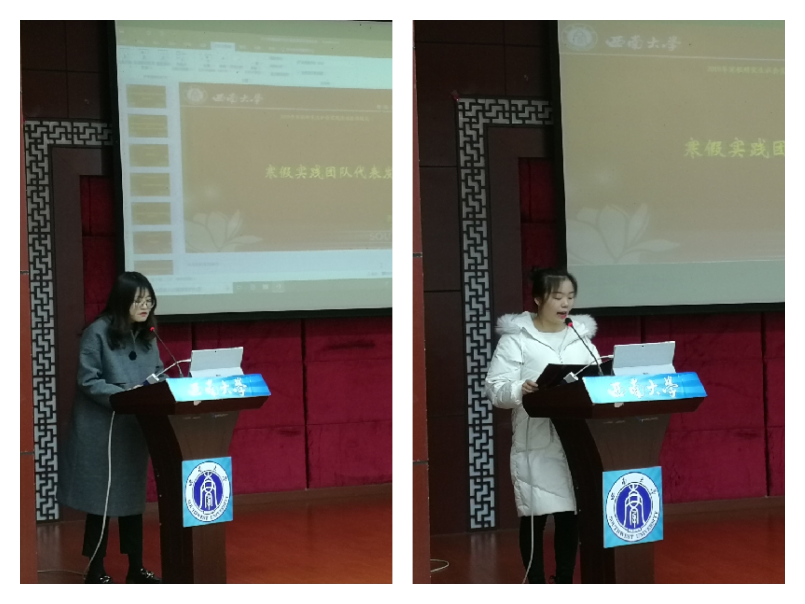 会议伊始,党委研究生工作部奖助实践科刘润老师宣读《关于开展2019年寒假研究生社会实践活动的决定》。随后,党委研究生工作部副部长胡娟为校级实践团队代表授旗。适中学校志愿服务队范晓文同学和诺西小学志愿服务队谢佳同学作为实践团队代表发言,从实践内容出发,提出改变实践课程形式,将学院特色带入乡村小学,因需施教,开展相应的兴趣课程。他们代表研究生实践团队郑重承诺,将在实践活动中践行学校“含弘光大 继往开来”的校训,展现betway西汉姆联研究生良好风貌。