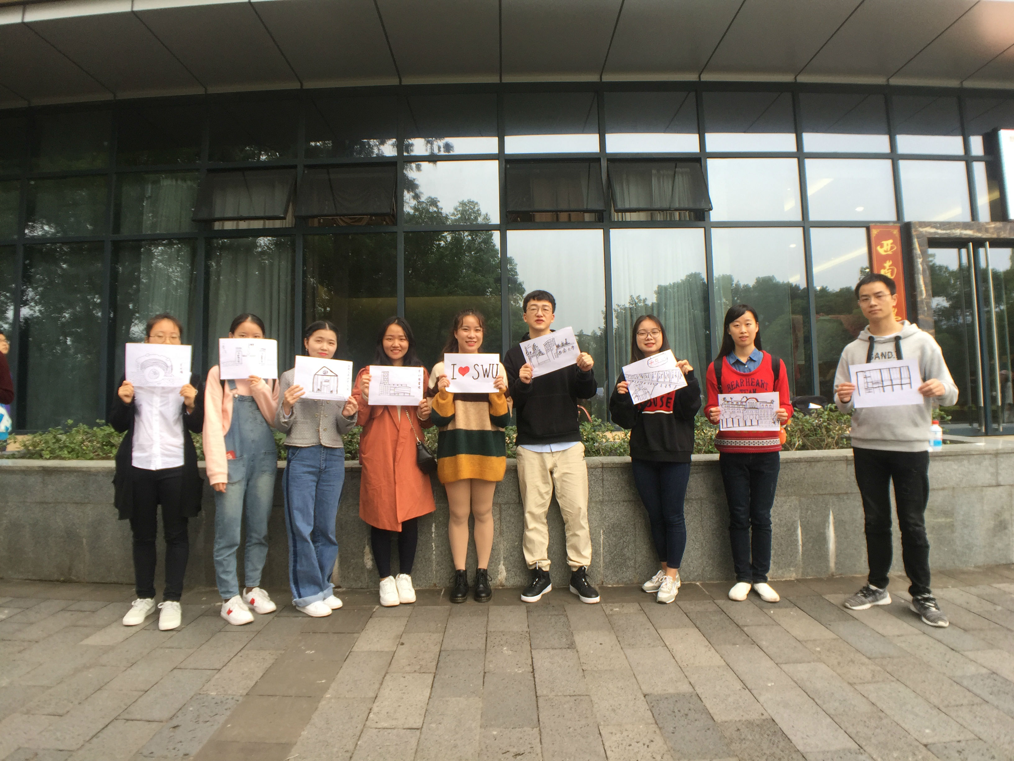 此外,每日参观结束后,参观人员分小组进行了素质拓展活动。每队以“明校史,爱西大”为主题分别设计自己小队的队名、队旗、口号,组成了以“爱校 敬校 铭史 创史”、“我爱西大,学行天下”、“智行合一,西南翘楚”等为口号的九个分队,并通过此次活动展现了团队风采,增强了同学们之间的感情,同时也加深了同学们对学校的了解,培养了爱校情怀。