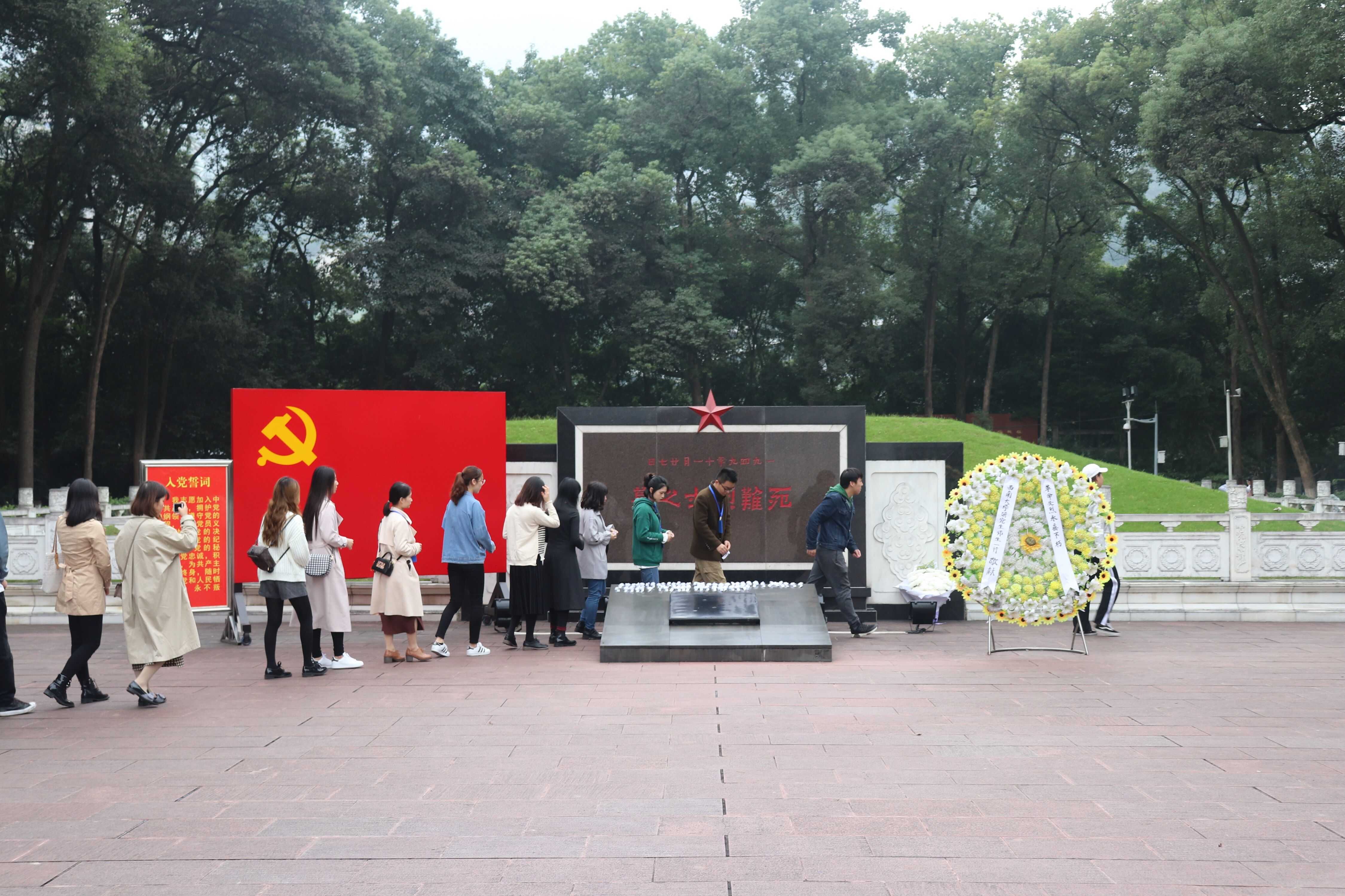 活动上半程,研会骨干们依次参观了渣滓洞监狱旧址、白公馆重温抗战文化。通过解说员慷慨激昂地讲解,骨干们了解到革命先烈们的英勇事迹,他们不屈不挠、英勇就义的大无畏精神,感染着现场的每一位听众。随后,研会骨干怀着对革命先烈的悼慰之情,在烈士公墓前举行庄重的祭扫献花宣誓仪式。