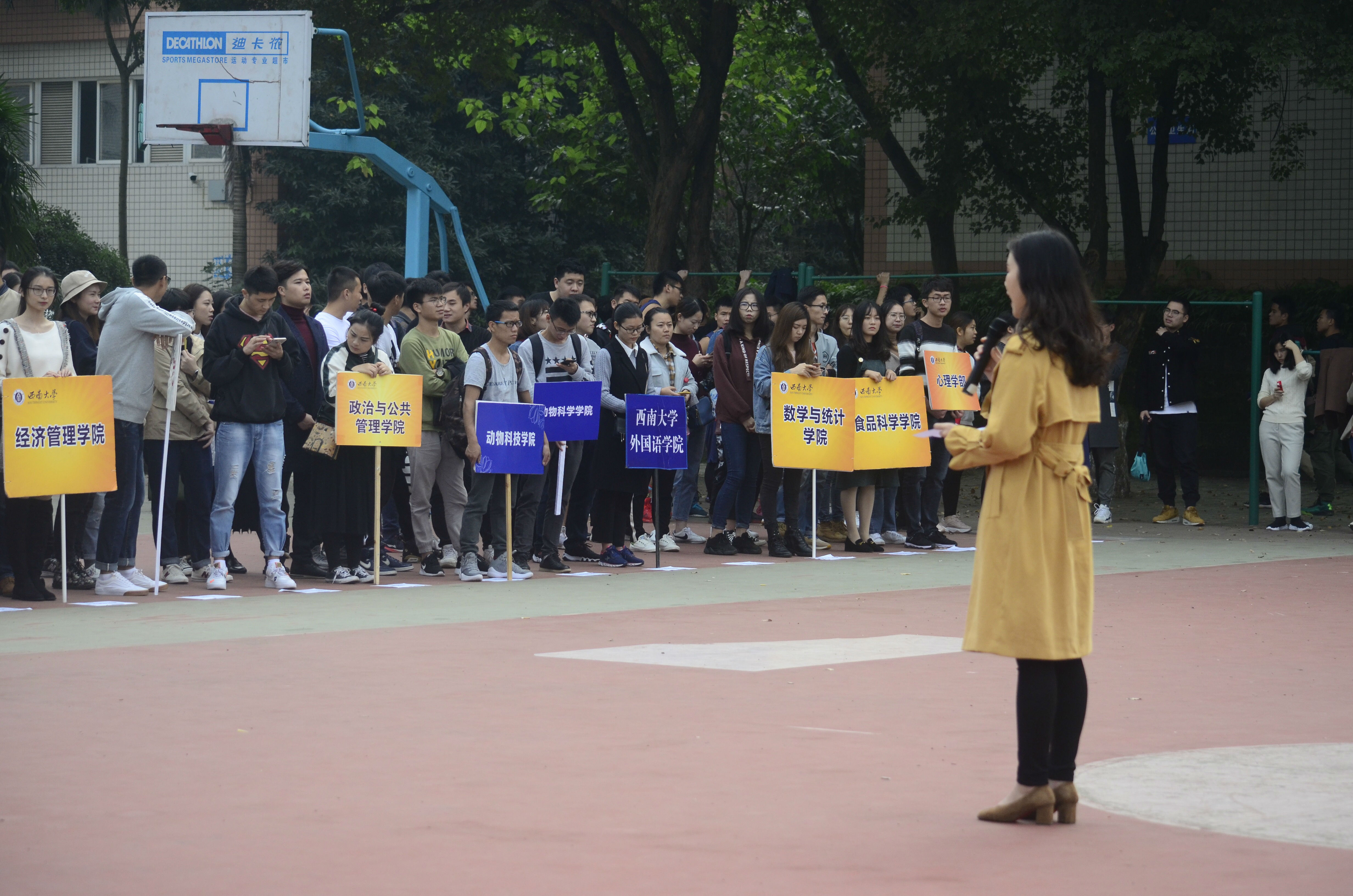 为丰富在校研究生课余生活,鼓励研究生提高身体素质,10月29日,学校2018-2019学年度研究生篮球联赛开幕式暨揭幕赛在学校第四运动场顺利举行。校研会主席团成员、承办单位代表及50支参赛球队代表、裁判员等相关人员参加了本次开幕式,同时由体育学院专业队与上届卫冕冠军资源环境学院球队为我们带来揭幕之战,校研会副主席杨希担任本次篮球联赛开幕式暨揭幕赛主持人。