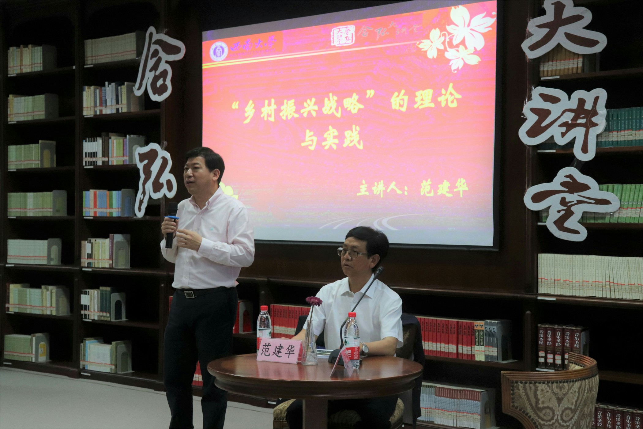 范建华研究员总结道,乡土文化,是中华优秀传统文化的基本内核。中华文化的根脉在乡村,实施“乡村振兴”战略的本质是回归并超越“乡土中国”,是在根本上解决我国“农业不发达、农村不兴旺、农民不富裕”的“三农”问题。“振兴乡村”就是“振兴中华”,就是中华民族伟大复兴中国梦的重要实现路径。他提出要构建现代农业产业体系、生产体系、经营体系;坚持农村优先发展,推动农业农村现代化,最终实现农业强、农村美、农民富的新目标。对于在座的同学,他鼓励他们在工作学习中将理论与实践结合,积极响应国家政策,走进乡村,振兴乡村。