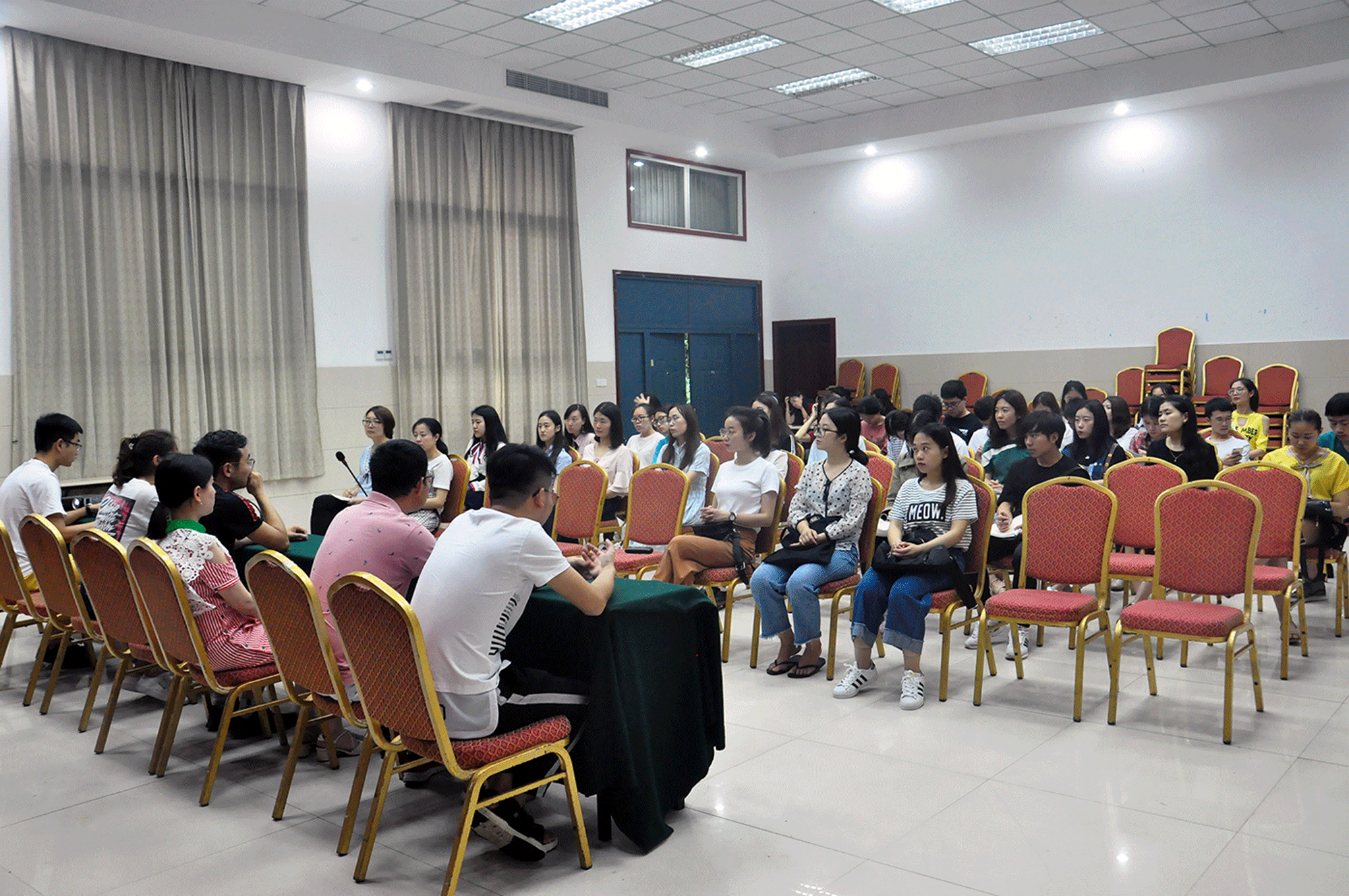 说明会伊始,校研会主席易君杰同学从项目的背景、进展、人员、意义等方面系统的介绍了研究生平和支教的相关事宜。随后,第一期“研究生平和支教团”的四位同学进行了工作汇报,分享支教生活。高士泽同学重点就其在福建平和支教过程中的基本情况和课堂教学风采进行汇报;徐志强同学从校园生活、民风民俗、名胜古迹等各个方面回顾了他的和平支教经历;叶露欣同学提到了她在支教中与学生们相处的点滴和收获;刘云露同学则对她在平和二中支教的经历、感想做了汇报。四位报告人恳切的话语,朴实的感悟让在场人员深受感动,纷纷提问交流,现场气氛活跃。最后,易君杰同学介绍了2018年研究生暑期社会实践的思路与重点进行了说明,并分别介绍了“百名博士防城港行”、珙县挂职锻炼、“百名博士泗洪行”、“蓝火计划”等实践项目的基本情况,并现场答疑。