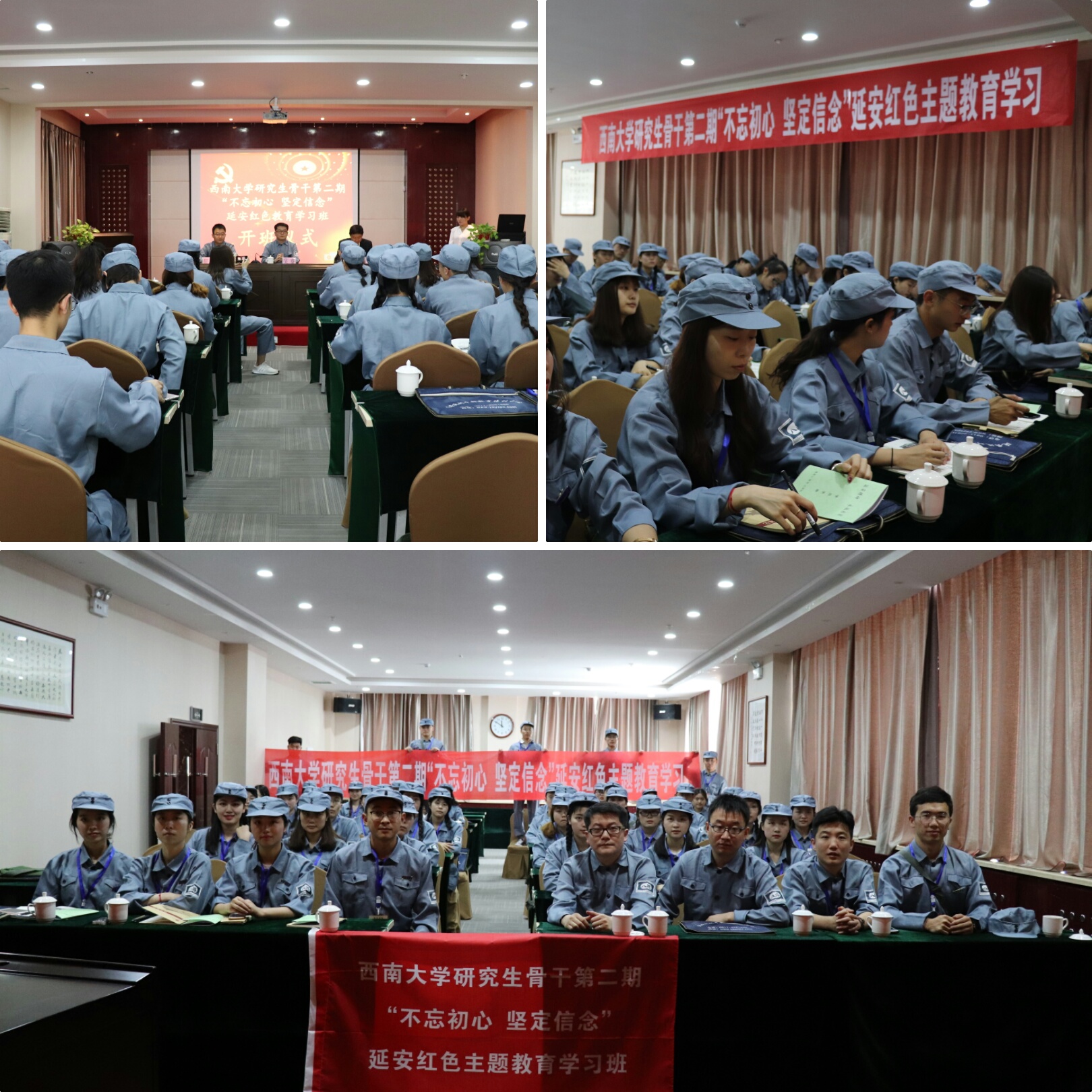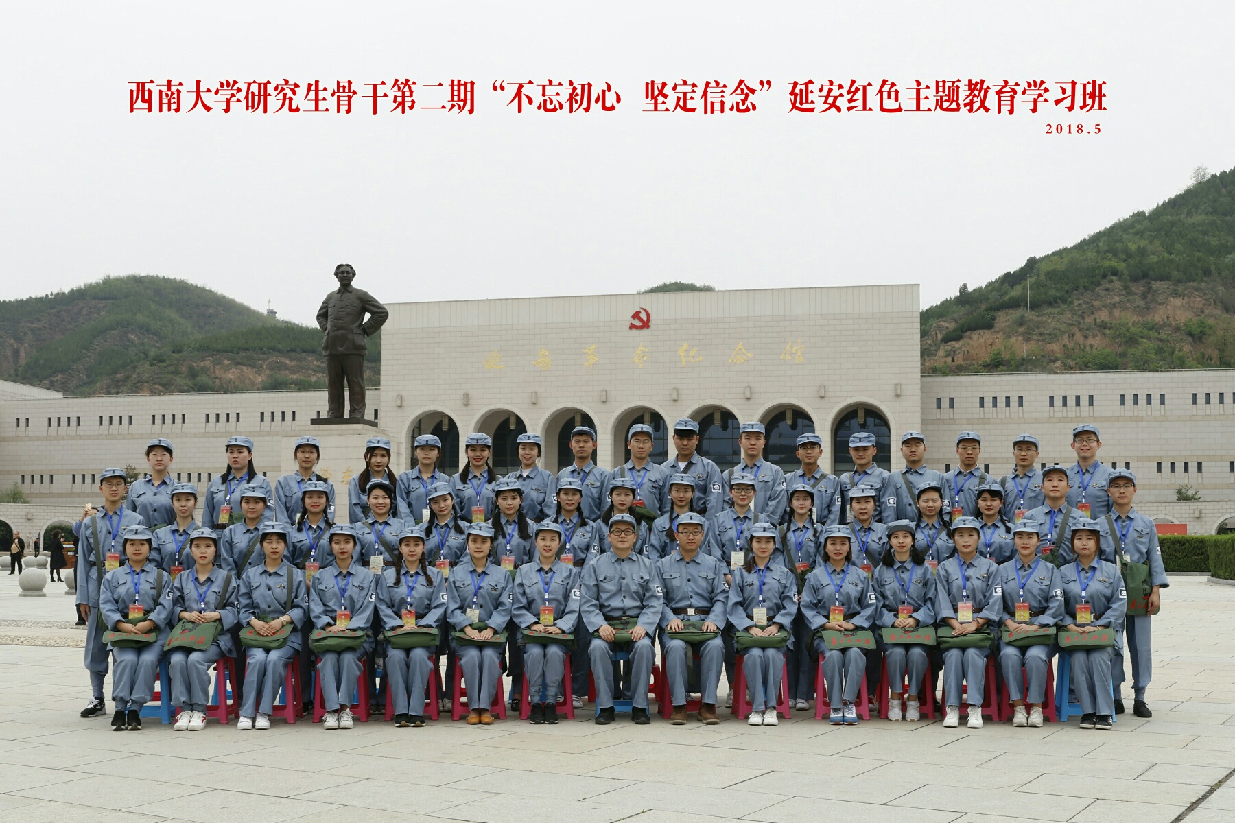 在马克思诞辰两百周年、五四青年节之际,为深入学习贯彻十九大精神,学习习近平总书记在北京大学师生座谈会上的讲话,切实用红色基因强化研究生使命感责任感,继承发扬中华民族优良传统。学校党委研工部、研究生院于5月3日至6日组织研究生骨干开展了第二期“不忘初心、坚定信念”延安红色主题教育学习活动。经全校遴选,共选拔出来自20余个二级培养单位的47名研究生组成本期学习班,党委研工部思政办主任吴睿、研究生院专业学位办田丰作为带队老师全程参与。