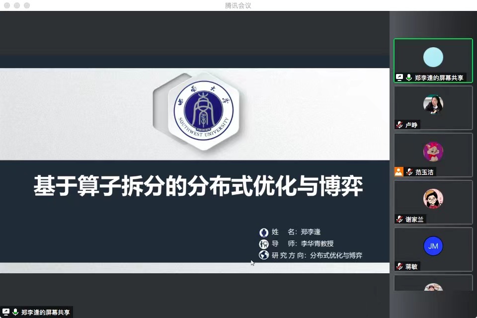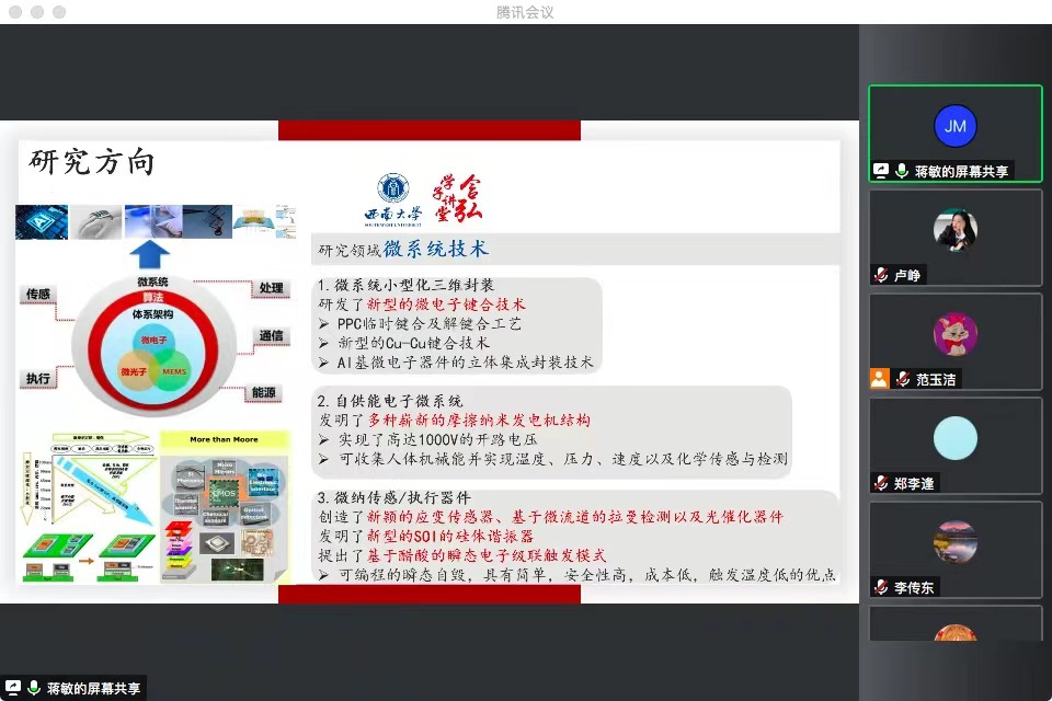 2022年12月17日下午,含弘学子讲堂之电子信息工程学院10周年院庆系列活动在线上成功举行。此次活动以“创新电信,智领未来”为主题,在展示学院建院10周年研究生教育培养成果的同时,积极营造了比学赶超的良好科研氛围。本次活动邀请电子信息工程学院院长李传东老师致辞,来自不同专业的7位研究生依次分享了各自的研究成果和心得体会,电子信息工程学院全体研究生参加了此次活动。
