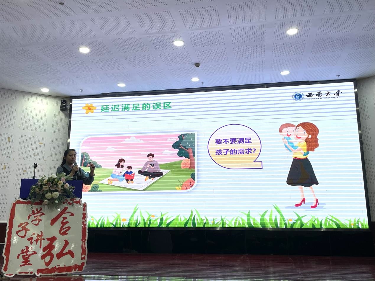 心理学部2022级发展与教育心理学专业的赵玥同学以“增加延迟满足感,提高自我控制能力”为题,从20世纪60年代米切尔教授的“棉花糖实验”导入,为大家介绍了心理学领域中自我控制能力的概念、理论基础及脑机制,澄清了延迟满足感与自我控制能力的关系,并梳理了育儿实践中关于延迟满足感的误用问题,为大家提供了提高自我控制能力的宝贵建议。
