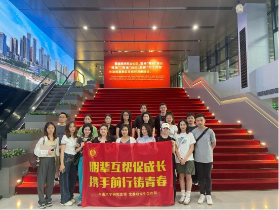 为深入学习贯彻党的二十大精神,铸牢中华民族共同体意识,教育引导各民族研究生坚定理想信念,厚植爱党、爱国的深厚情感,促进研究生交往交流交融,5月30日,党委研究生工作部组织学校少数民族高层次骨干人才计划研究生前往重庆市大轰炸“六五”隧道史实展览馆和重庆市规划展览馆进行主题教育观摩学习;此外,本次主题教育活动还为研究生提供一个“大手牵小手”的交流互动平台,毕业研究生通过分享自身科研心得,为新生解答科研工作上的疑惑与困难。