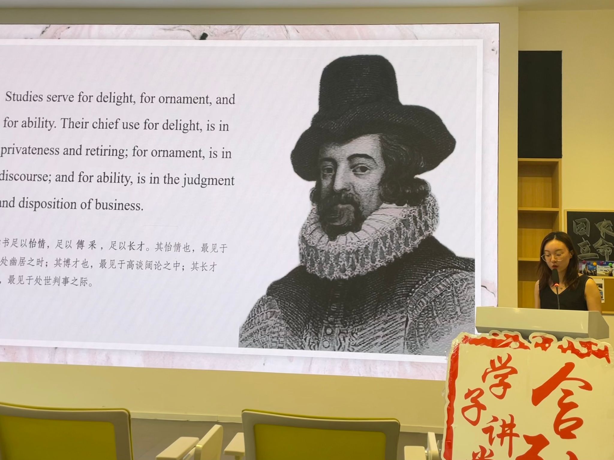 黄竞莹同学从培根的《论读书》出发,向我们分享了跨学科阅读的内涵。跨学科阅读是跨学科教育、研究和学习的基础,更是当下流行的“跨界学习”的基础。对于读书,我们从一个学科提出的问题,可以从另一个学科找到答案。同时她还总结了跨学科阅读的价值与意义,并为如何实现跨学科阅读提出了三个切实可行的方案。