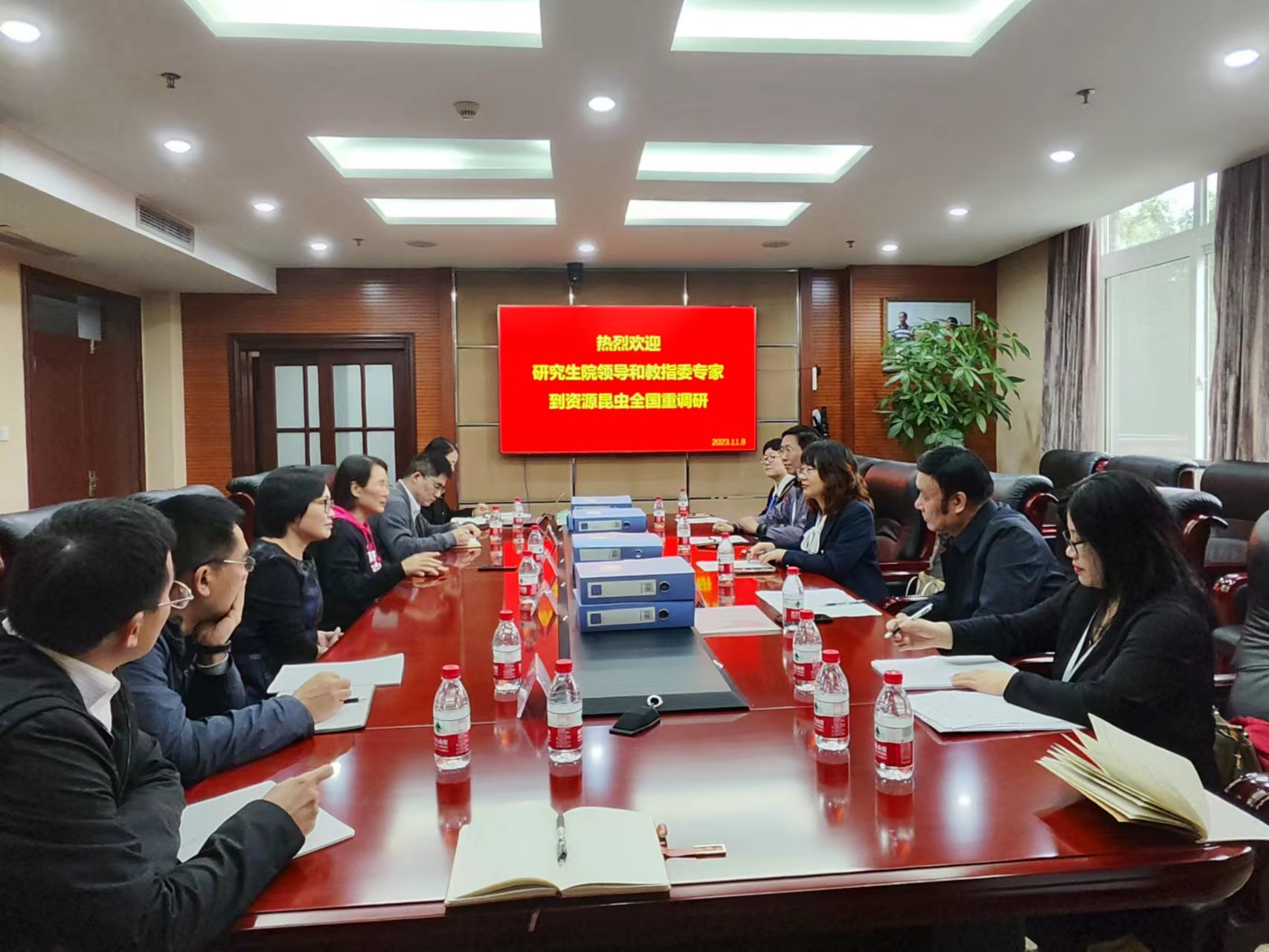 资源昆虫高效养殖与利用全国重点实验室崔红娟副主任、何宁佳教授、蔡晓霞辅导员等相关同志就实验室研究生招生、资源配置、培养特色及毕业发展等情况及工作开展过程中存在的困难和问题进行了汇报。督导调研工作组翻阅了实验室准备的相关材料,就实验室师资队伍建设、行政队伍管理、研究生科研成果奖励、论文开题评阅报告、学位论文答辩记录、专业学位研究生联合培养基地等情况进行了交流,针对实验室提出的相关问题,杨丹副院长进行了回应,对实验室在督导方面的工作成果进行高度评价,并鼓励实验室坚持开展“科研之星”奖项的评选、规范论文相关材料填写,推动研究生教育质量不断提升。