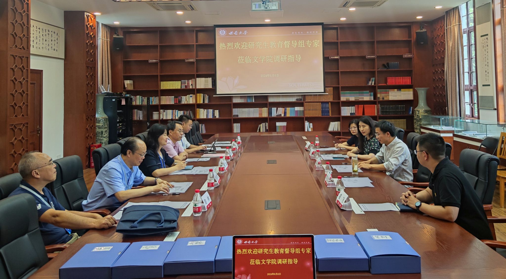 6月6日下午,党委研究生工作部部长秦松、副部长周敏以及教育指导委员会专家委员孙振东教授、唐智松教授、陶林教授等一行前往新闻传媒学院、文学院开展督导调研工作。