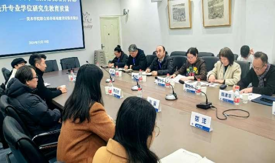 陈刚副院长作“聚焦专业实践环节,践行分类培养目标,提升专业学位研究生教育质量”联合培养基地建设工作报告。他介绍,学院现有重庆美术馆与深圳福田区第二外国语学校两大研究生培养基地,旨在整合美术领域资源,拓宽研究生实践、学术与职业发展路径。学院今年两次督导,检查了基地的教学与实践融合、师资队伍建设及资源利用情况,发现存在理论与实践脱节、双导师协作不紧密、资源挖掘不足等问题。对此,学院将计划进一步优化教学模式,强化师资队伍,深化资源共享与合作,提升人才培养质量与社会服务成效。学院还向督导组展示了近年来研究生的优秀作品,包括今年7幅入围全国美展的优秀作品。