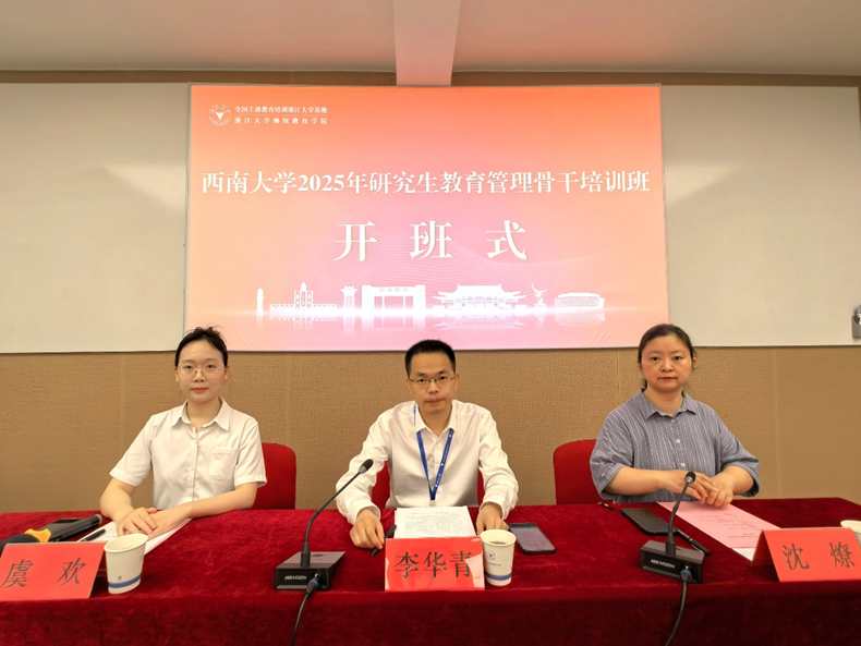 7月8日上午,专题研学班开班式于浙江大学华家池校区举行,betway西汉姆联研究生院副院长李华青,浙江大学继续教育学院纪委书记、副院长沈燎,浙江大学继续教育学院西南二区培训部项目主任虞欢出席开班式,开班式由虞欢主持。首先,沈燎致欢迎词,对浙江大学的历史沿革和干部教育培训工作情况进行了简要介绍,她表示,浙江大学继续教育学院将严格按照既定培训目标,认真做好组织工作,为研学提供有力保障。然后,李华青副院长作开班动员讲话,代表学校对浙江大学继续教育学院给予的大力支持表示衷心的感谢,并动员全体学员应把握新时代研究生教育变革的机遇和挑战,全面提升履职尽责的能力本领,促进工作提质增效,同时要求研学人员严守纪律,按期完成研学任务。