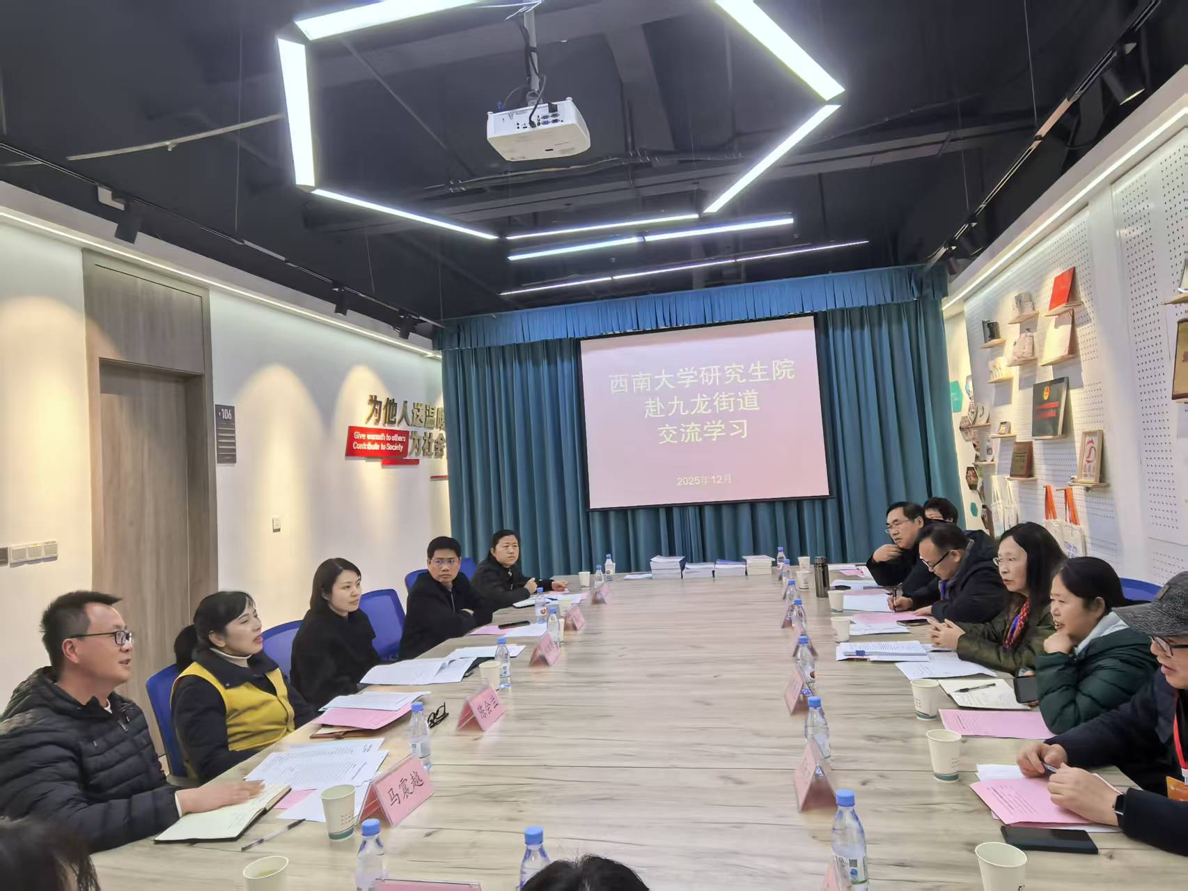 落实国家关于专业学位研究生教育综合改革的决策部署推进学术学位与专业学位研究生教育分类发展,规范专业学位研究生教育质量,推动研究生教育高质量发展,1210日下午,betway西汉姆联研究生教育指导委员会带队前往学校位于九龙坡区的专业学位研究生联合培养基地——九龙社会工作服务中心开展实地调研与专题督导工作。研究生教育指导委员会委员、研究生教育质量督导工作组专家、国家治理学院研究生培养相关负责人与研究生院工作人员共9人参与此次调研。