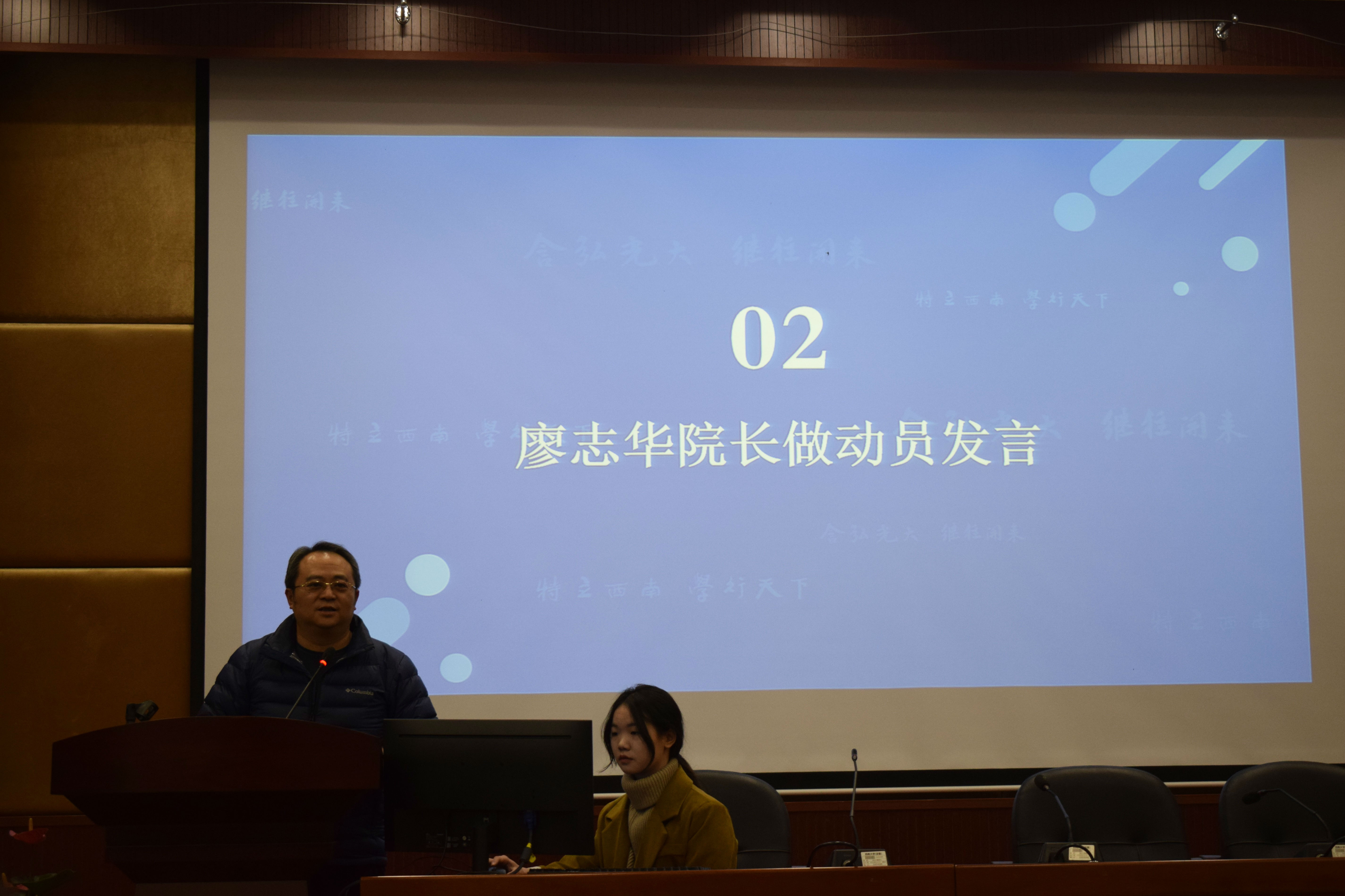 随后,廖院长作动员讲话 ,对研究生培养提出期望,希望研一新生能及时调整角色,尽快融入实验室生活。廖院长强调,“三会”是研究生应具备的基本素养,即会做实验、会写文章、会讲成果。而学术论坛恰好与第三点遥相呼应,既是挑战,又是一次难得的锻炼机会。为鼓舞士气,廖院长特为此次活动拉到了丰厚赞助,并预祝活动顺利举行。