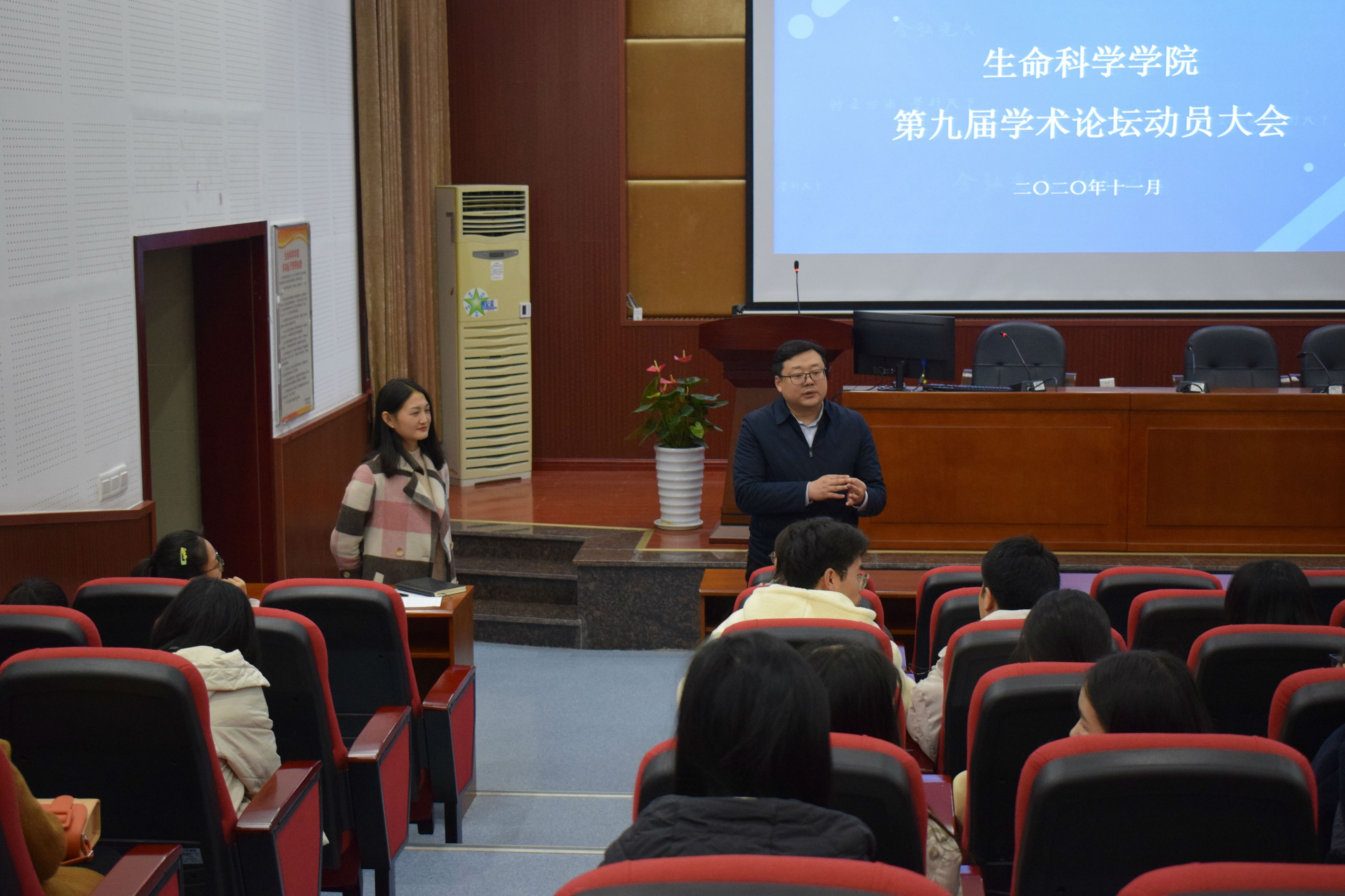 为推动生命科学学院第九届学术论坛顺利进行,调动各专业点参赛积极性, 11月26日下午四点,由研会主办的生命科学学院第九届学术论坛动员大会在生科院多功能报告厅举行。出席本次会议的有副院长廖志华、党委副书记陈渝、辅导员谷彩霞、研会全体成员及各专业点部长,会议由谷彩霞老师主持。