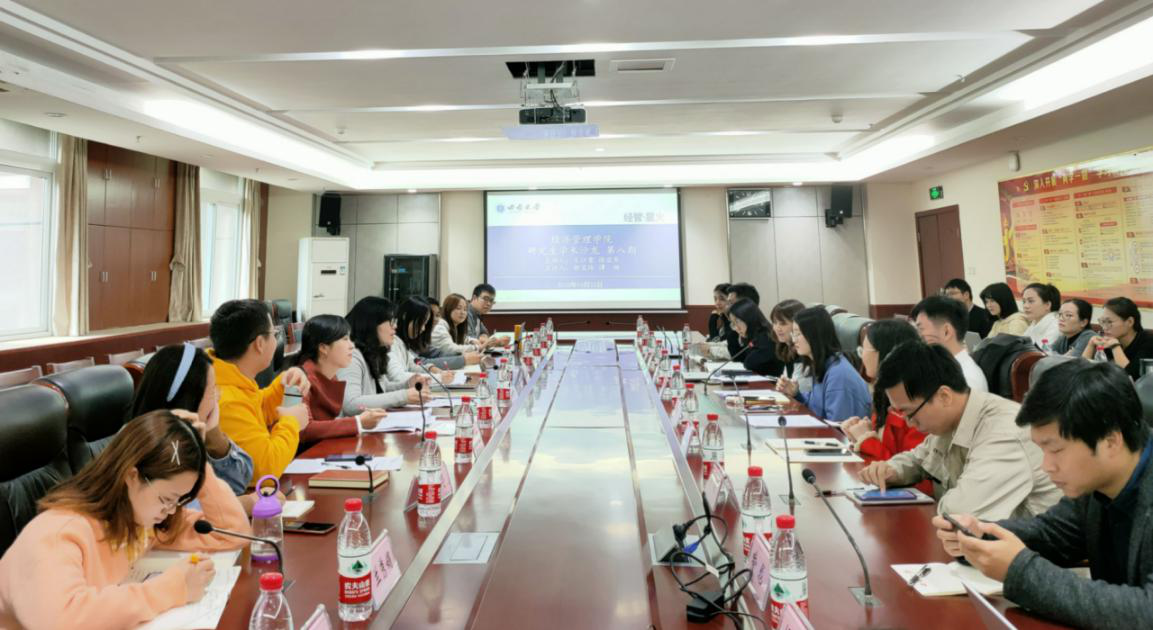 2020年10月23日下午3点,经济管理学院第八期“经管·星火”研究生学术沙龙——博士生专场在学院A204教室举行。本次沙龙由2019级博士生文江雪、2020级博士生徐亚东担任主讲人,经济管理学院邹宝玲副教授、谭畅老师担任点评嘉宾,学院党委副书记田丽以及学院2019级、2020级博士生参加了此次学术沙龙。本次沙龙由2020级博士生曹宇芙主持。