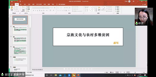 郝坚介绍论文《宗族文化与农村多维贫困》,论文以CFPS农村数据为样本,通过描述性分析、主回归分析以及内生性分析等多种分析方法,分析宗族文化对多维贫困的影响作用,得出结论宗族文化对贫困有积极的改善作用。